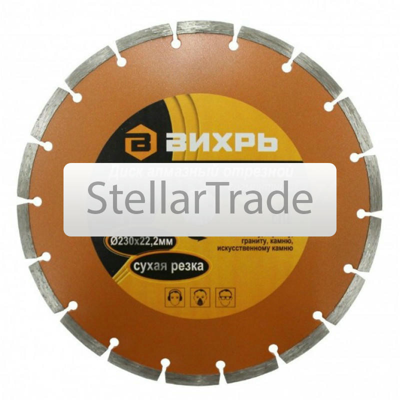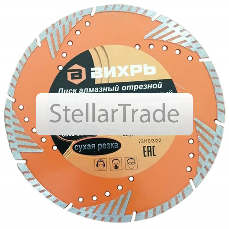 Диск алмазный отрезной Вихрь 73/10/3/184 170Купить!тг.Stellartrade.kzДоставка: из АлматыПожаловатьсяДиск алмазный отрезной Турбо СТАНДАРТ, 230 х 22,2 мм, сухая резка Вихрь - это алмазный отрезной диск, который используется совместно с угловыми шлифмашинами (болгарками) для сухой резки гранитных, бет еще→онных, кирпичных и каменных изделий. Особенности: Более демократичный вариант линейки дисков «Турбо» Турбированная форма, обеспечивает плавное безударное резание,