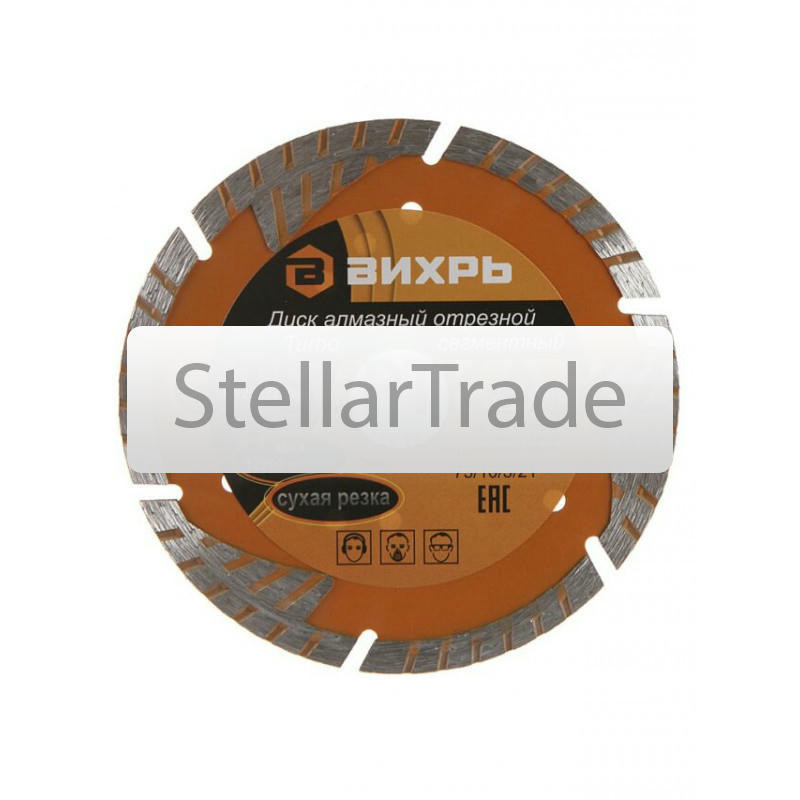 Диск алмазный отрезной Вихрь 73/10/3/171 350Купить!тг.Stellartrade.kzДоставка: из АлматыПожаловатьсяДиск алмазный отрезной Турбо СТАНДАРТ, 125 х 22,2 мм, сухая резка Вихрь - это алмазный отрезной диск, который используется совместно с угловыми шлифмашинами (болгарками) для сухой резки гранитных, бет еще→онных, кирпичных и каменных изделий. Особенности: Более демократичный вариант линейки дисков «Турбо» Турбированная форма, обеспечивает плавное безударное резание,