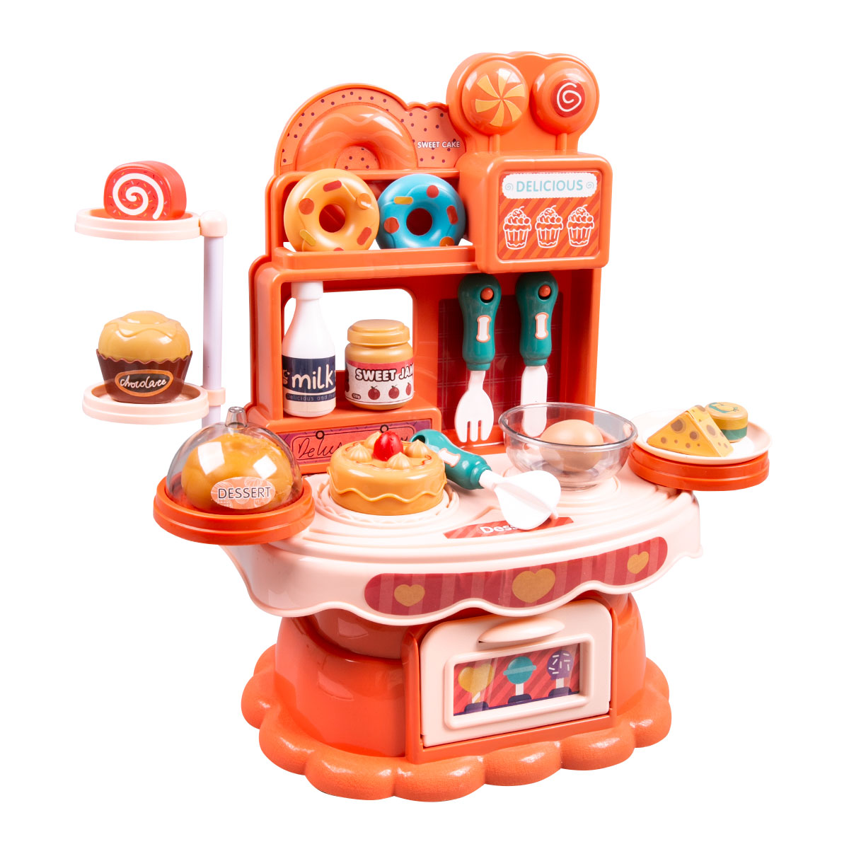 OS: Игровой набор Mini "Кондитерская"6 990Купить!тг.Marwin.kzДоставка: из АлматыПожаловатьсяИгровой набор позволит вашему ребенку почувствовать себя настоящим кондитером и познакомит его с разными сладостями и кухонными принадлежностями. Кондитерский столик оборудован полочками, крючками и еще→ящиком для удобного хранения различных аксессуаров. Все аксессуары детально проработаны. Украсить столик и аксессуары можно с помощью тематических наклеек. В процессе игры ребенок будет развивать мелкую моторику рук, координацию движений и воображение. Набор изготовлен из высококачественного пластика, абсолютно безопасного для здоровья детей. В комплекте: кондитерский столик, бутылочка молока (3 х 7 см), тарелка (8 см), торт (3.5 х 5 см), кекс (4 х 4.5 см), бутылочка (3 х 5 см), джем (3.5 х 4.5 см), …