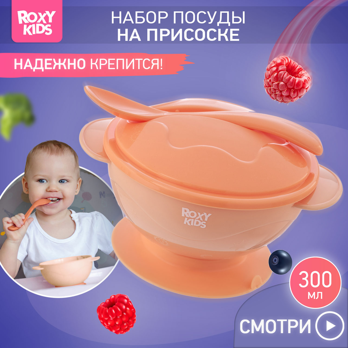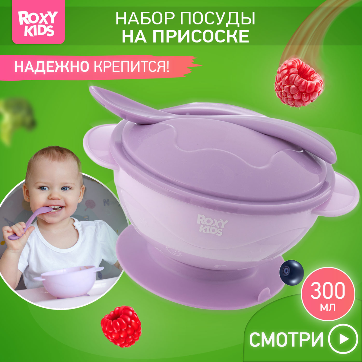 Roxy: Набор для кормления: тарелка на присоске, крышка и ложка, цвет лавандовый2 990Купить!тг.Marwin.kzДоставка: из АлматыПожаловатьсяДетская тарелочка на присоске ROXY-KIDS поможет приучить ребенка к самостоятельному приему пищи и сделает процесс кормления легким и приятным! Тарелка легко крепится к столу или стульчику для кормл еще→ения и останется на месте, даже если малыш совершит неосторожное движение рукой. Специальный язычок помогает легко открепить изделие от поверхности. Плоская и изогнутая форма ложки идеально подходит для малыша, который только учится пользоваться столовыми приборами. Крышка плотно закрывается для транспортировки, а ложка удобно крепится на крышку и не теряется. Большой диаметр и глубина тарелочки подходят для жидких каш и пюре. Изделие выполнено из высококачественного пищевого материала, имеет закругленные …
