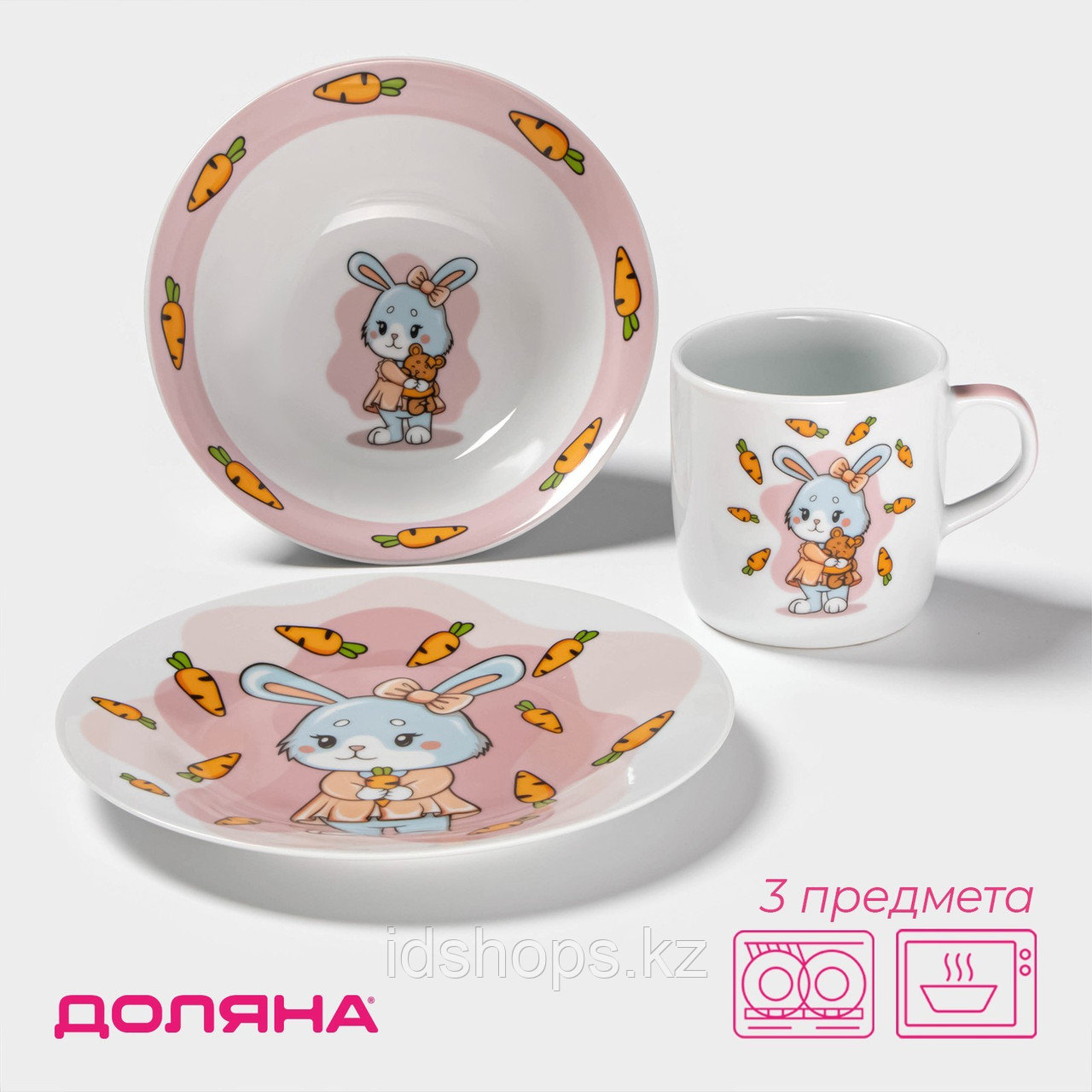 Набор детской посуды Доляна «Лапочка зайка», 3 предмета: кружка 230 мл, миска 400 мл, тарелка d=18 см,4 656Купить!тг. Маркетплейс: Satu.kz ID Shopps.kz - Оптово-розничный Склад Доставка: по Казахстану ПожаловатьсяВаш ребенок капризничает за столом? Совсем не хочет слушаться и выступает против каждой новой ложки с настоящей акцией протеста? Превратите завтраки, обеды и ужины в занимательную игру!Набор детской п еще→осуды — верный помощник для всех мам и пап. Красочные цвета и любимые герои будут радовать малыша всякий раз, когда будет наступать время приёма пищи. Завтраки, обеды и ужины станут