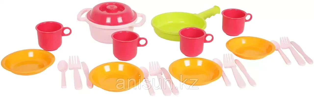 Набор посуды Настенька 2126 Росигрушка3 774Купить!тг. Маркетплейс: Satu.kz Ani-Sun Trade Доставка: по Казахстану ПожаловатьсяЗамечательный комплект детской посуды, в котором есть все необходимое для самых интересных ролевых игр. Набор Настенька включает: -чашки-4шт, блюдца-4шт, -кастрюля с крышкой-1шт. -сковородка-1шт, -вил еще→ка-4шт, -ложка-4шт. С таким набором девочки почувствуют себя настоящими хозяйками и с радостью будут помогать маме на настоящей кухне.