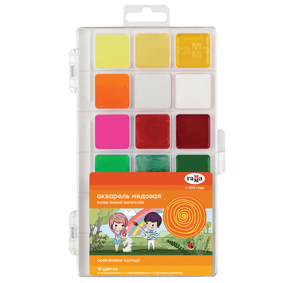 Акварель Гамма "Оранжевое солнце", медовая, 12 цветов (6 неон..+ 6 классич.), европодвес1 450Купить!тг.Marwin.kzДоставка: из АлматыПожаловатьсяМедовая акварель «Оранжевое солнце» имеет расширенную палитру цветов, включающую классические цвета и цвета с различными эффектами. В наборе: 6 классических и 6 флуоресцентных цветов. «Волшебные» ц еще→вета дают возможность проявить фантазию и создать любой сказочный сюжет. Краски нетоксичны, легко смываются с рук и отстирывается с одежды, хорошо смешиваются. Кюветы с высокими бортиками и увеличенным расстоянием между красками предназначены для удобства в работе детей. Палитра для смешивания красок расположена на крышке. Объем кювет - 3,14 см3. Форма кювет - квадратная.