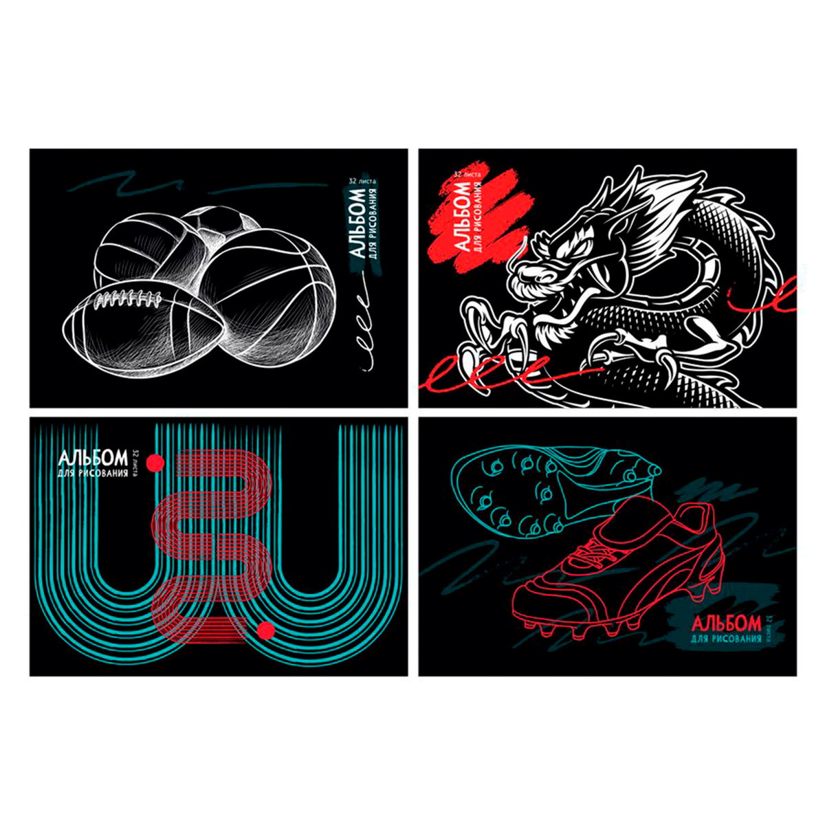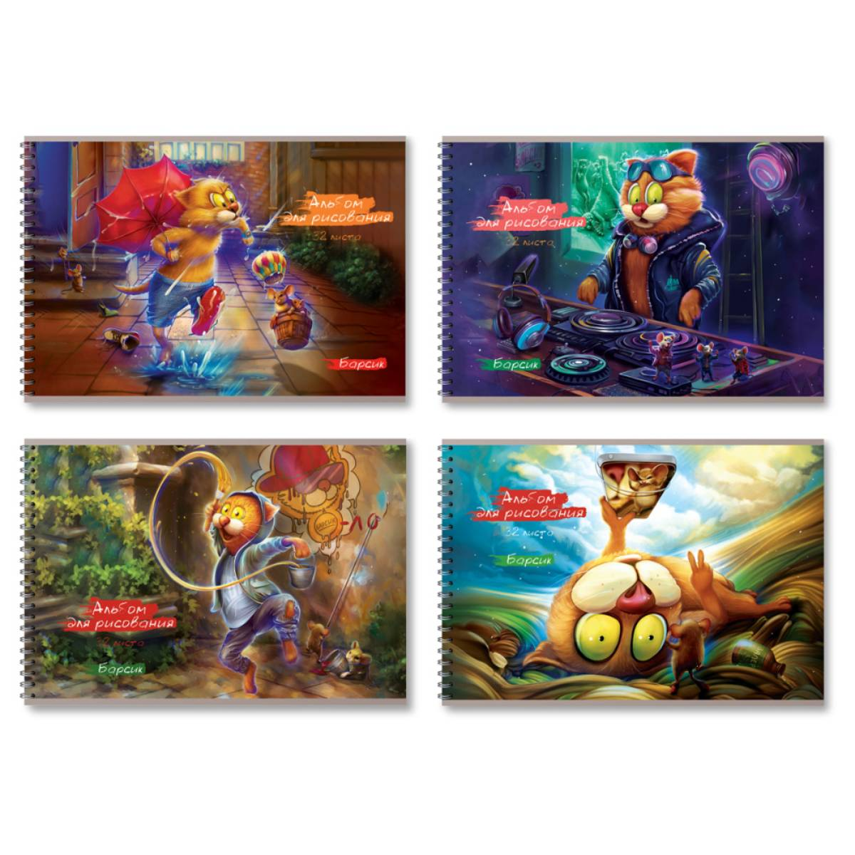 — наборы скреплённых чистых листов для рисования. В данную категорию могут входить как традиционные альбомы (стандарта А4, обычно на 20 – 30 листов), так и специфические разновидности — к примеру, изделия с образцами для раскрашивания, альбомы «царапок» (для рисования стилусом по вощёной поверхности с нанесёнными на неё контурами) и т. п. Отметим, что краски, карандаши и другие подобные предметы в набор поставки обычно не включаются, альбомы традиционно продаются по отдельности.Выводить