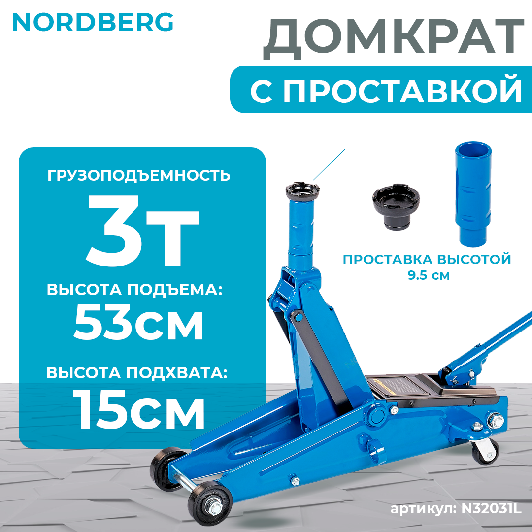 Nordberg N32031LОписание: Домкрат подкатной 3 тонн с проставкой NORDBERG N32031L Грузоподъемность: 3т Минимальный уровень подхвата: 150мм Максимальная высота подхвата: 530мм Подъём без нагрузки до максимальной высоты за одно нажатие В комплекте проставка для рамных автомобилей высотой 95мм Маневренные поворотные задние колеса 360º 53 523 тг.Avtoinstrument.kzДоставка: из АстаныПожаловатьсяКупить!