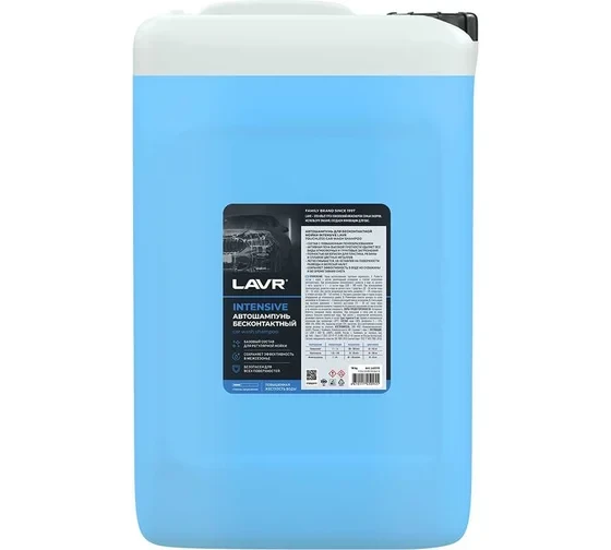 Автошампунь для бесконтактной мойки "INTENSIVE" повышенная пенность 3,8 (1:40-1:60) /1,1 кг LAVR Ln2306 ln23062 565Купить!тг.All-tools.kzДоставка: из АлматыПожаловатьсяАвтошампунь для бесконтактной мойки Intensive 1 л LAVR Ln2306 используется на профессиональных мойках. Быстро и эффективно удаляет с кузова автомобиля грязь, масляные пятна, следы насекомых и другие в еще→иды загрязнений. Шампунь легко смывается, не имеет запаха, не вызывает аллергии. Не вступает в реакцию с пластиком, резиной, цветными металлами. Защищает кузов от коррозии. Состав автошампуня INTENSIVE Лавр: анионные ПАВ 5-15%, неионогенные ПАВ < 5%, эфиры гликолей < 5%, хелатирующие добавки 5-15%, регулятор рН 5-15%, краситель < 1%, вода.