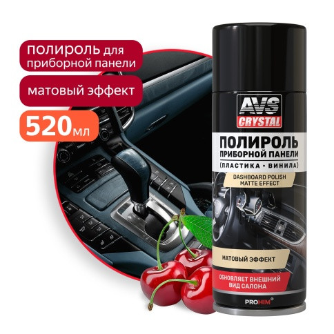 Полироль для приборной панели "Вишня" (аэрозоль) матовый 520 мл. AVS3 260Купить!тг. Маркетплейс: Satu.kz ТОО «Мотор ЛТД» Доставка: по Казахстану ПожаловатьсяВходящие в состав специальные компоненты очищают обрабатываемую поверхность, восстанавливают первоначальный цвет и придают матовый эффект. Силиконовые полимеры защищают поверхность от старения и растр еще→ескивания. Образуемая защитная пленка обладает антистатическим эффектом, препятствует оседанию пыли. Защищает от ультрафиолета. Длительный срок действия. После нанесения