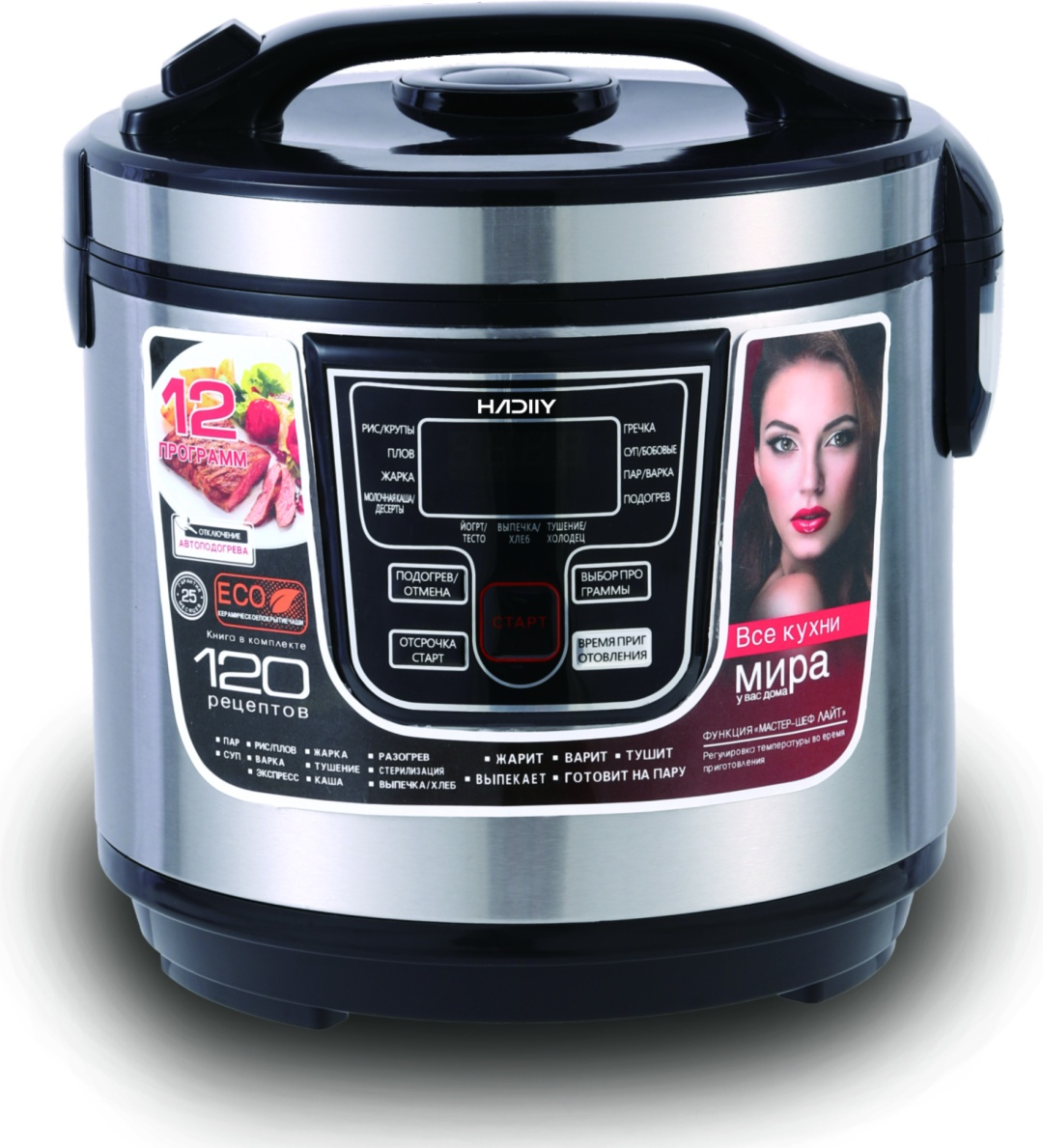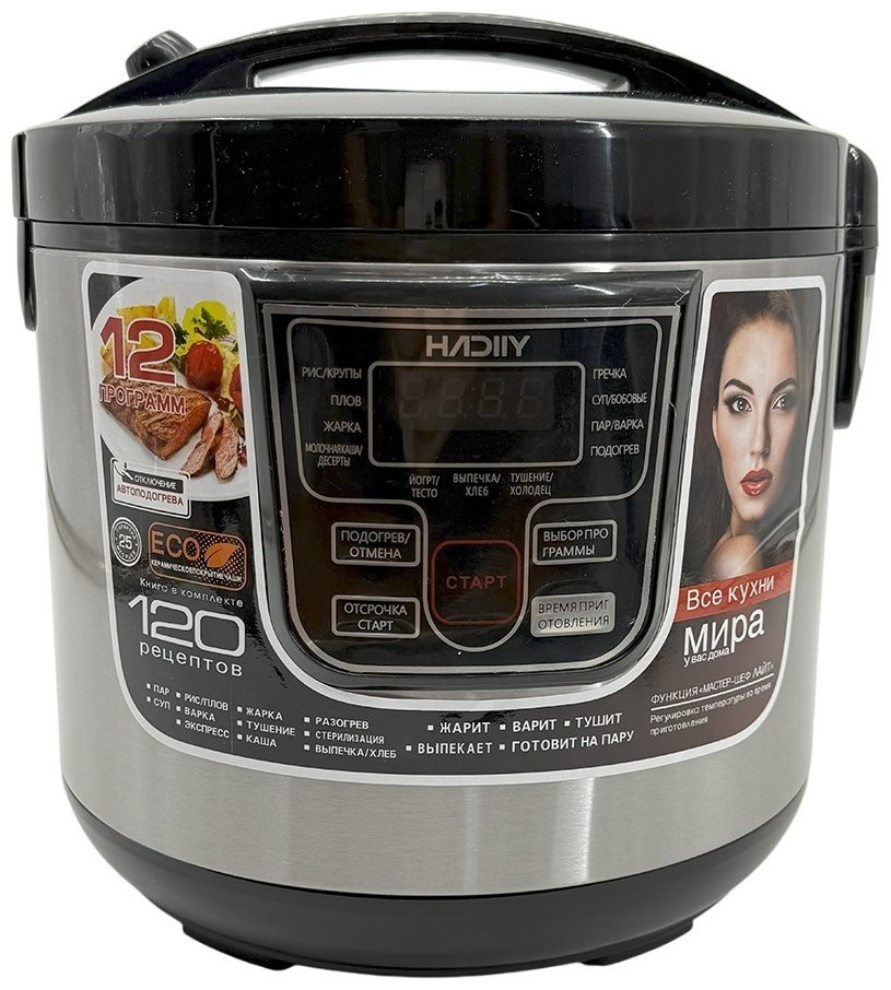 Мультиварка HADIIY HD-2202 черныйМультиварка HADIIY HD-2202 представляет собой кухонный прибор с электронным управлением и объемом 6 литров. Она имеет серебристый цвет корпуса и керамическое покрытие чаши. Мощность мультиварки составляет 1000 Вт. В числе прочего, она оснащена функцией отложенного старта и программой для приготовления плова. 13 482 тг.Greenprice.kzДоставка: из АлматыПожаловатьсяКупить!