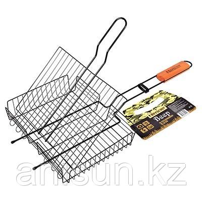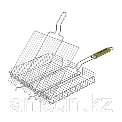 | Решетка-гриль BOYSCOUT универсальная большая (веер в ПОДАРОК) 65(+5)x42x32x5,5cм 61304 Размер: 65(+5) x 42 x 32 x 5,5 cм. Жарочная поверхность 42*32*5,5 см Решетки для барбекю BoyScout в отличие от шампуров универсальны. Они подходят не только для мяса, рыбы, бифштексов, курицы, но и для сарделек, сосисок, овощей и прочего. Мы предлагаем решетки для барбекю с антипригарным и хромированным покрытием, а также решетки из нержавеющей стали. Решетки имеют деревянные ручки, которые не нагреваются при использовании. Разнообразие размеров и форм позволяет Вам без особых хлопот приготовить вкусную еду в любых количествах. | |