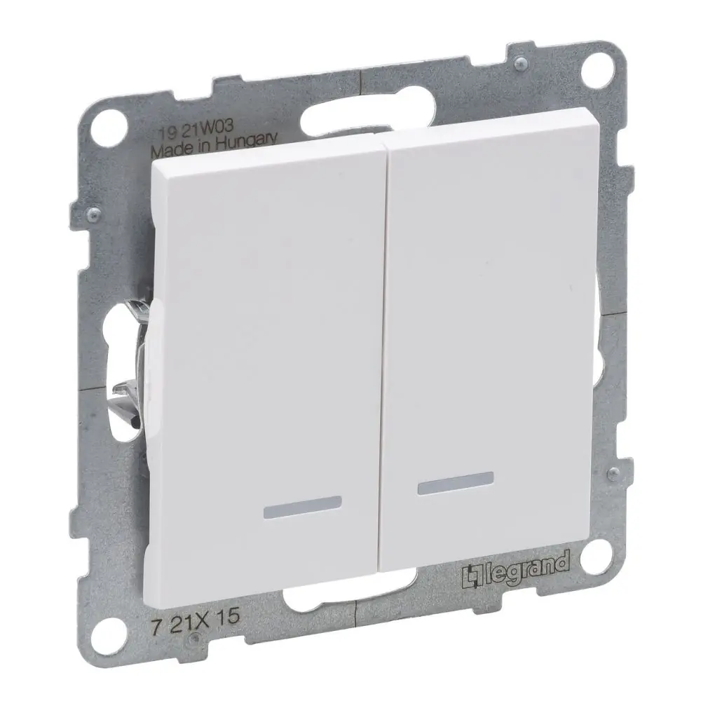 Выключатель Legrand Suno 721105 2 клавишный белый5 982Купить!тг.Greenprice.kzДоставка: из АлматыПожаловатьсяПредназначен для установки в электрических сетях жилых и общественных зданий, используется для управления приборами освещения, вентиляции. Используется для независимой коммутации двух нагрузок. Мате еще→риал клавиш - глянцевый или окрашенный пластик, который устойчив к выгоранию и загрязнениям. Токоведущие части выключателя имеют защиту от случайного прикосновения. Безвинтовые зажимы для присоединения проводов обеспечивают быстрое подключение и отключение, гарантируют надежное и долговечное соединение и не требуют обслуживания. Удобные широкие толкатели облегчают работу по демонтажу провода.