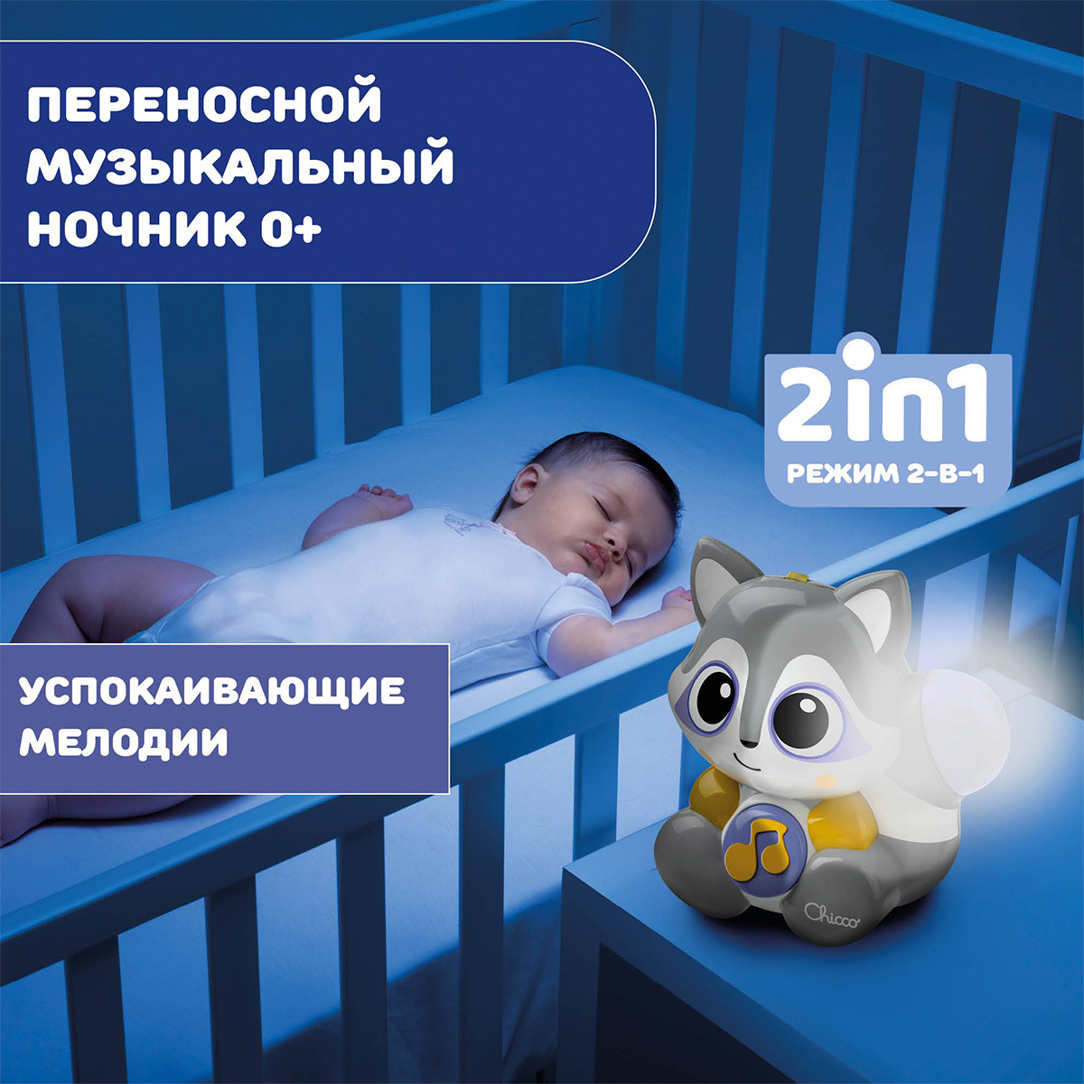 Chicco: Игрушка подвеска-ночник музыкальная Енот Клауди 0м+11 390Купить!тг.Marwin.kzДоставка: из АлматыПожаловатьсяИгрушка 2-в-1: музыкальная игрушка и ночник. Обладая приятными расслабляющими мелодиями и эффектом плавного мигания света, Енот Клауди будет лучшим другом для сна вашего ребенка! Благодаря удобной еще→системе крепления игрушку можно прикрепить к коляске и взять с собой на прогулку или в путешествие! Включите мелодии, нажав музыкальную ноту на его животике, и выберите между классической или современной музыкой, также отрегулируйте громкость по своему вкусу! Пока Енот включен, его хвост загорается мягким и успокаивающим белым светом, чтобы еще больше расслабить кроху! - Размеры игрушки: 12x7x13 см. - Размеры упаковки: 14x21x8,5 см - Состав: АБС, ПП, хлопок
