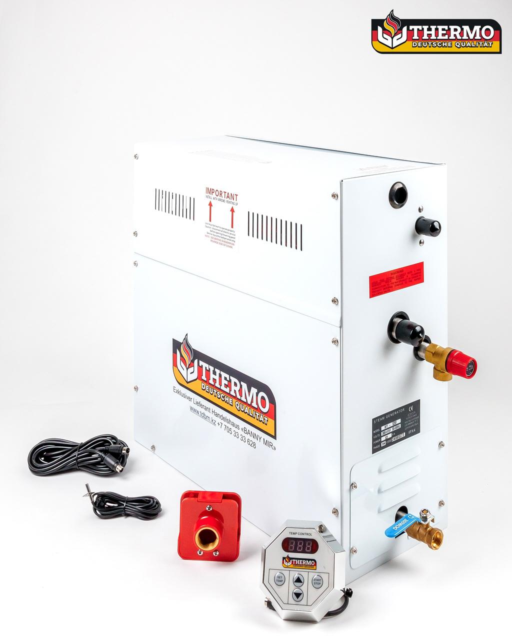 Парогенератор для сауны THERMO FL-90, с цифровым пультом, проточный, с ручным клапаном слива, 9 кВт (380Вт,167 000Купить!тг. Маркетплейс: Satu.kz Торговый Дом "Банный мир" Доставка: по Казахстану ПожаловатьсяПарогенератор для сауны THERMO FL-90, с цифровым пультом, проточный, с ручным клапаном слива, 9 кВт (380Вт, 7-9 м3)