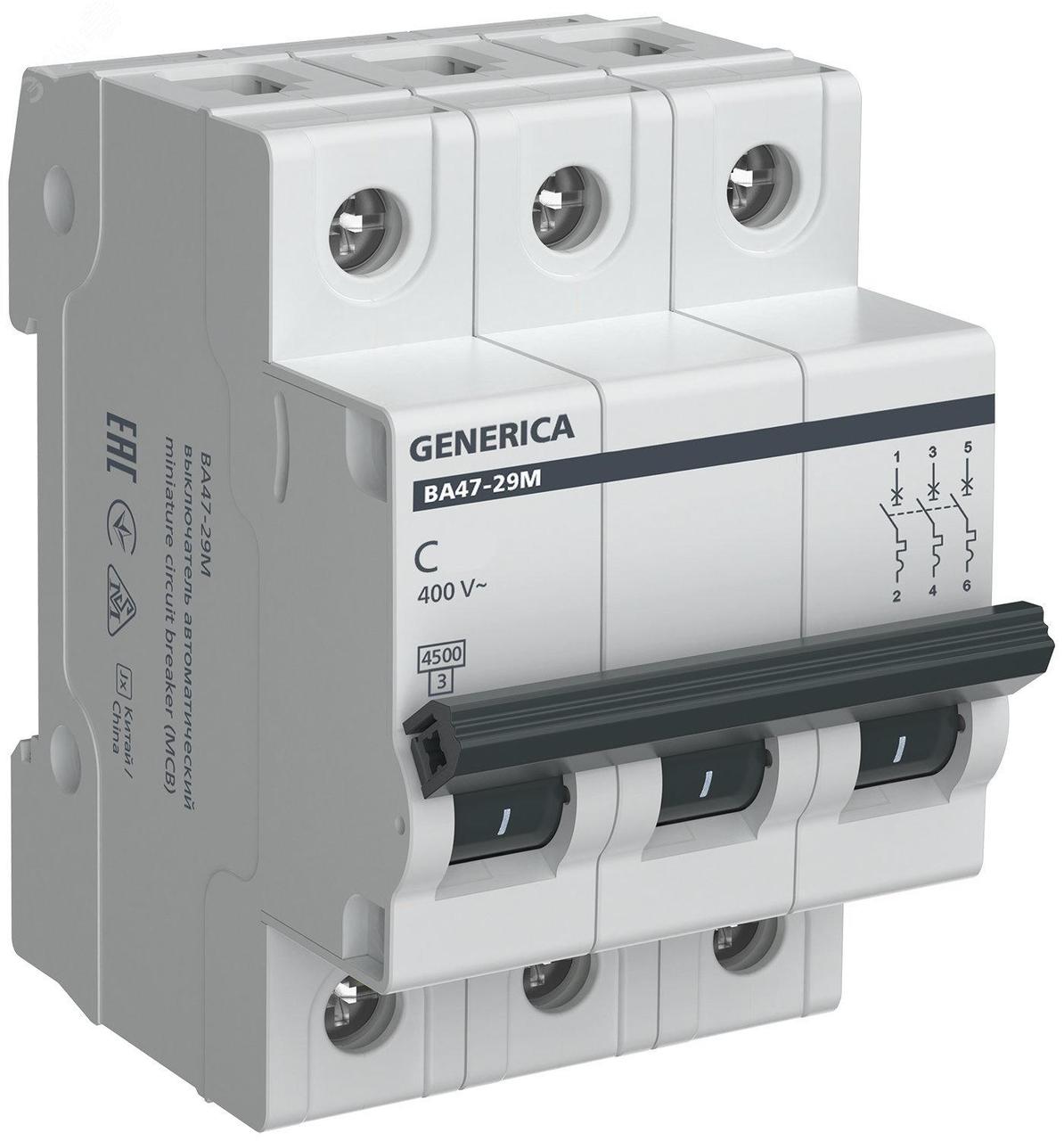GENERICA ВА47-29М 3P 8А 4,5кА C (MVA21-3-008-C-G) Автоматический выключатель5 815Купить!тг.Nabludenie.kzДоставка: из АстаныПожаловатьсяОптовые поставки! Минимальная сумма заказа — 500 000 T Назначение изделия Выключатель автоматический типа BA47-29M предназначен для работы в однофазных или трехфазных электрических сетях переменного т еще→ока номинальным напряжением до 400 В и частотой 50 Гц. Выключатель выполняет функции автоматического отключения электроустановки при появлении сверхтоков (перегрузки или короткого замыкания) и оперативного управления участками электрических цепей. Основная область применения выключателя: распределительные щиты, групповые щитки (квартирные и этажные), цепи питания отдельных электроприемников.