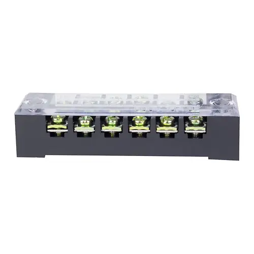 Колодка клеммная карболитовая Deluxe TB - 1506 (15A 6P) (TB - 1506 (15A 6P)) 1 черный TB - 1506 (15A 6P)Колодка клеммная карболитовая Deluxe TВ - 1506 (15A, 6P) Предназначена для надежной коммутации и удобства разводки проводников различных сечений и металлов. Колодка клеммная карболитовая устанавливается в различных низковольтных комплектных устройствах в цепях переменного тока до 600V с частотой 50 Hz. Колодка клеммная карболитовая TВ - представляет собой диэлектрический корпус, в который вмонтировано несколько шин из высококачественной лужёной латуни и металлических зажимов с винтами. Также укомплектована прозрачной защитной крышкой, которая оснащена маркерами для удобства маркировки проводников. 3 184 тг.Greenprice.kzДоставка: из АлматыПожаловатьсяКупить!