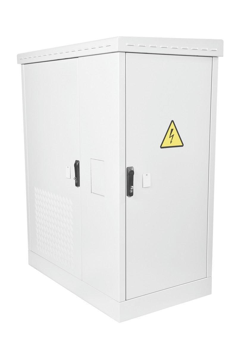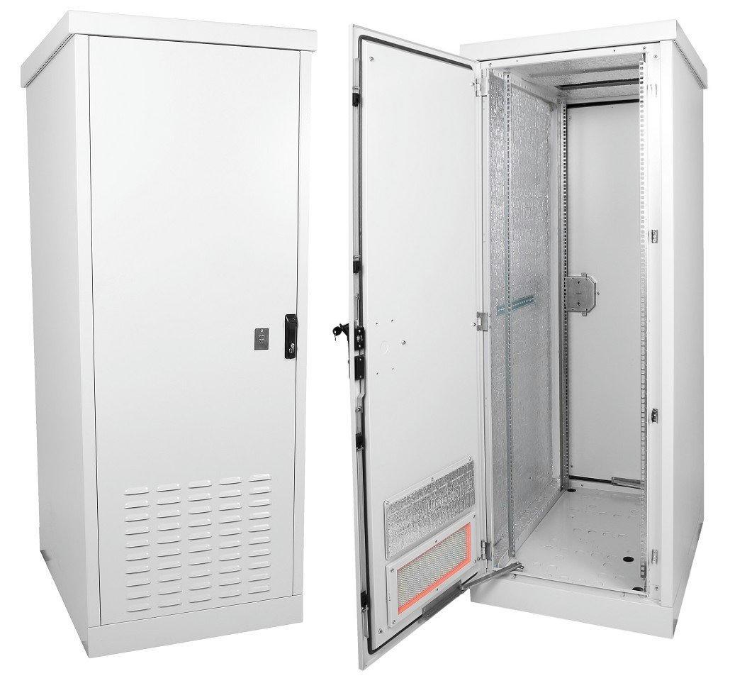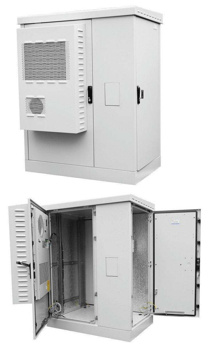Оптовые поставки! Минимальная сумма заказа — 500 000 T Шкаф уличный всепогодный настенный с системой контроля микроклимата 12U, 600х620х330 мм, полезная глубина 220, металл, передняя дверь вентилируемая, нагрузка до 150 кг, IP65,-50…+45°С. В комплект входит: нагреватель, разрядник, индикатор напряжения, гигростат, термостат, УЗО, автомат, розетка 16А, клеммник, шина заземления, геркон, DIN рейка, монтажная панель, вертикальн. напр 19".,