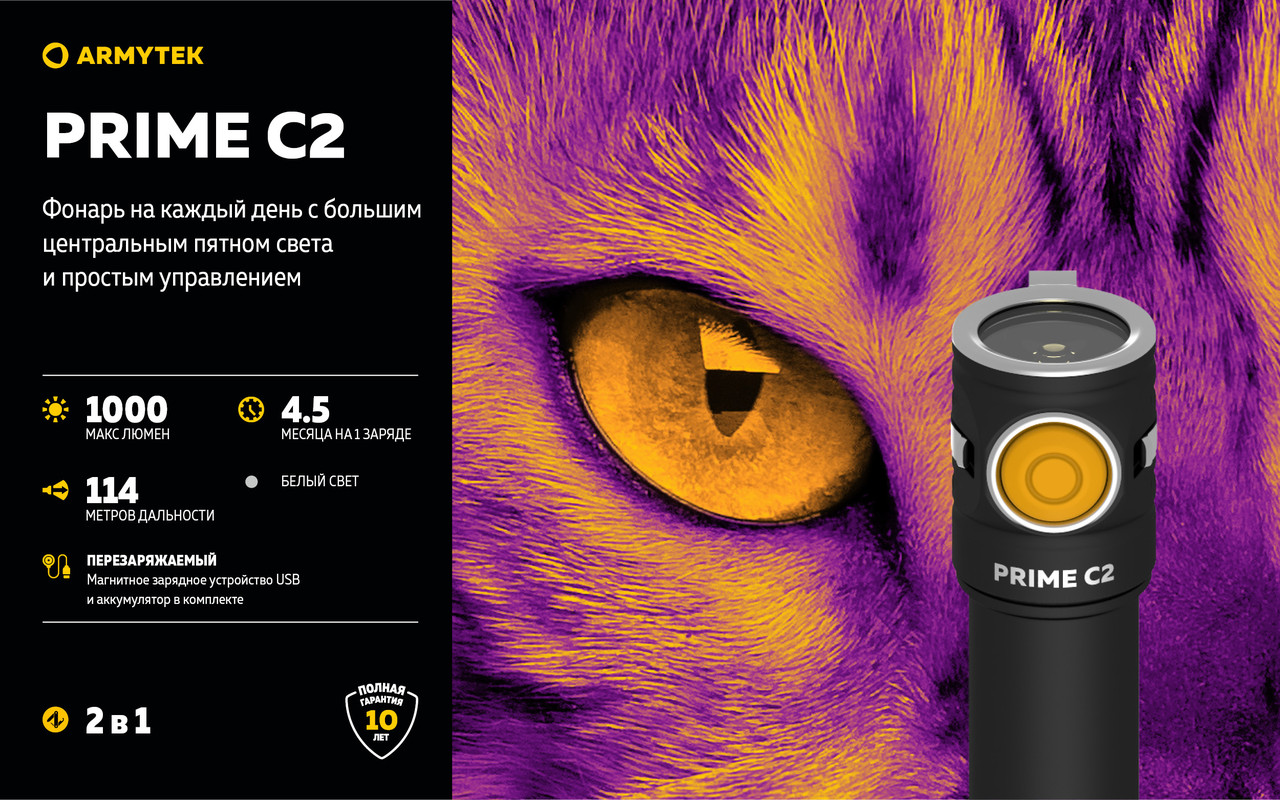 ARMYTEK PRIME C2 MAGNET USB (холодный свет)Prime C2 — это модель для тех, кто в повседневном применении использует базовый набор режимов. Оптимальная яркость, интуитивно понятное управление, а также комплектные и опциональные аксессуары делают Prime C2 незаменимым основным или дополнительным источником света на вечерней прогулке, в походе с ночевкой или дома. Надежный нейлоновый чехол позволяет фиксировать фонарь на ремне, 35 500 тг. Маркетплейс: Satu.kz ТОО "THOR'S HAMMER" Доставка: по Казахстану ПожаловатьсяКупить!