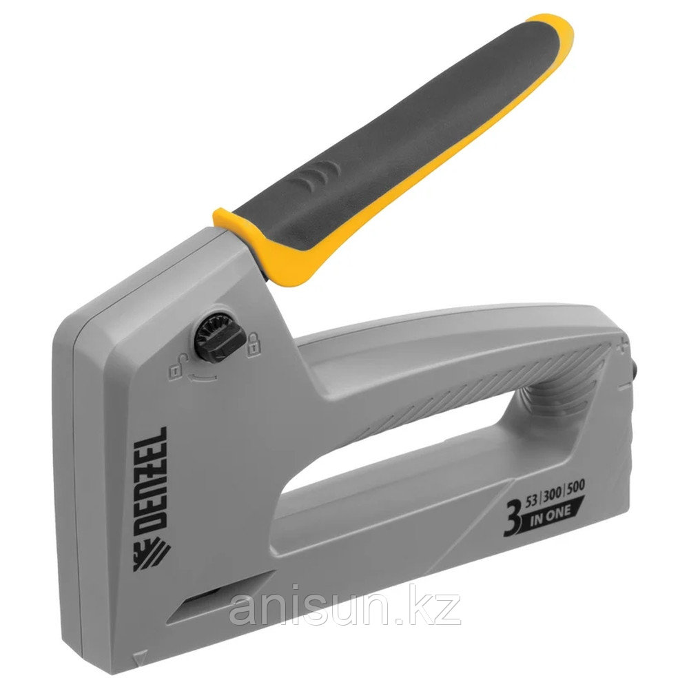 | Мебельный степлер Denzel 40211 со стальным корпусом, регулировкой силы удара и функцией быстрой загрузки работает со скобами типа 53 размером 4-14 мм. Используется для фиксации на деревянном основании фанеры, ДВП, оргалита, ткани, утеплителя. Силу удара можно регулировать в зависимости от толщины материала, что обеспечивает высокое качество работ. Степлер будет полезен для обивки мебели, пригодится во время ремонта.ПреимуществаПрочный стальной корпус устойчив к механическим воздействиям и рассчитан на длительное использование.Загрузка скоб в скобоприемник занимает несколько секунд, что экономит время мастера.Рукоятка с рифленой поверхностью не скользит в руке, обеспечивая комфортную работу. | |