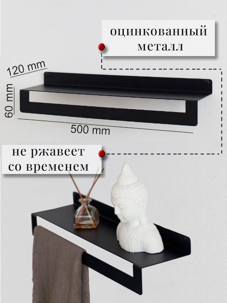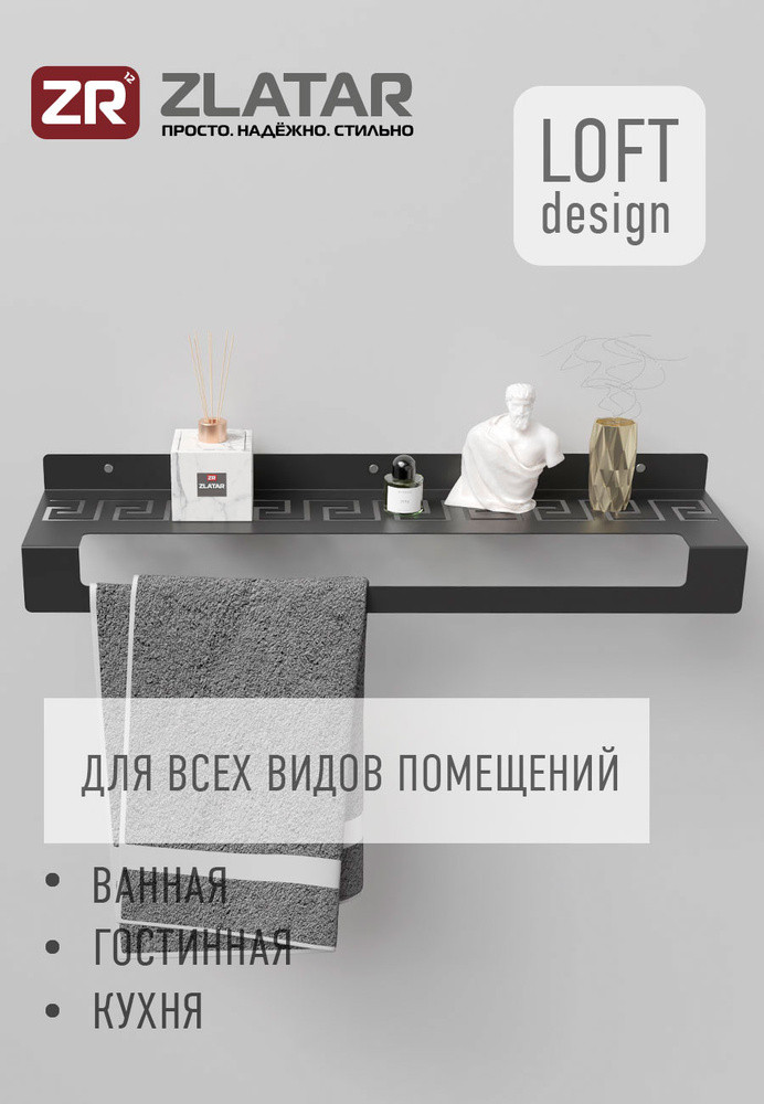 Полка настенная, Attica Тип 2, ширина 50см, ЧерныйСмотрите отзывы и заказывайте по ссылке на , бренд ZLATAR, коллекция ZERO, артикул KNP-CH3ZERO Навесные полки для ванной комнаты изготовлены из оцинкованного металла. В комплектацию входит полка для ванной прямая и 3 самореза с заглушками и чопиками для них. Навесные полки можно использовать для любой комнаты, в туалет, на кухню и ванную. Полки покрыты высококачественной полимерной краской 5 490 тг. Маркетплейс: Satu.kz ZR ZLATAR Торгово-производственная Компания. Доставка: по Казахстану ПожаловатьсяКупить!