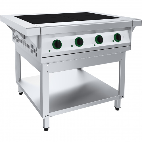 Напольная электрическая плита Пищевые Технологии ПЭП-0,48-ДШ-02 предназначена для приготовления большого ассортимента блюд в наплитной посуде на предприятиях пищевой промышленности, общественного питания и торговли. Модель оснащена 4 независимыми варочными зонами, духовым шкафом с верхним и нижним трубчатыми электронагревателями (ТЭНами), 4 уровнями направляющих для противней,
