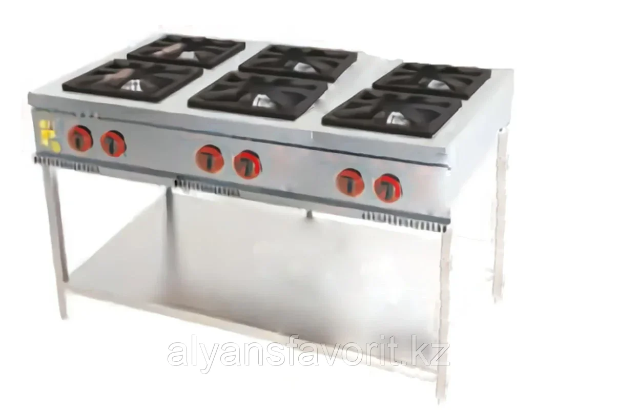Внимание! Цена на сайте не является публичной офертой , окончательная цена будет предоставлена после обработки заказа менеджером Газовая плита производственная 6 конфорочная - для баров, кафе, ресторанов, столовых и точек быстрого питания. Простая и надежная конструкция на ножках. Длина - 115 см Ширина - 80 см Высота - 80 (90) см