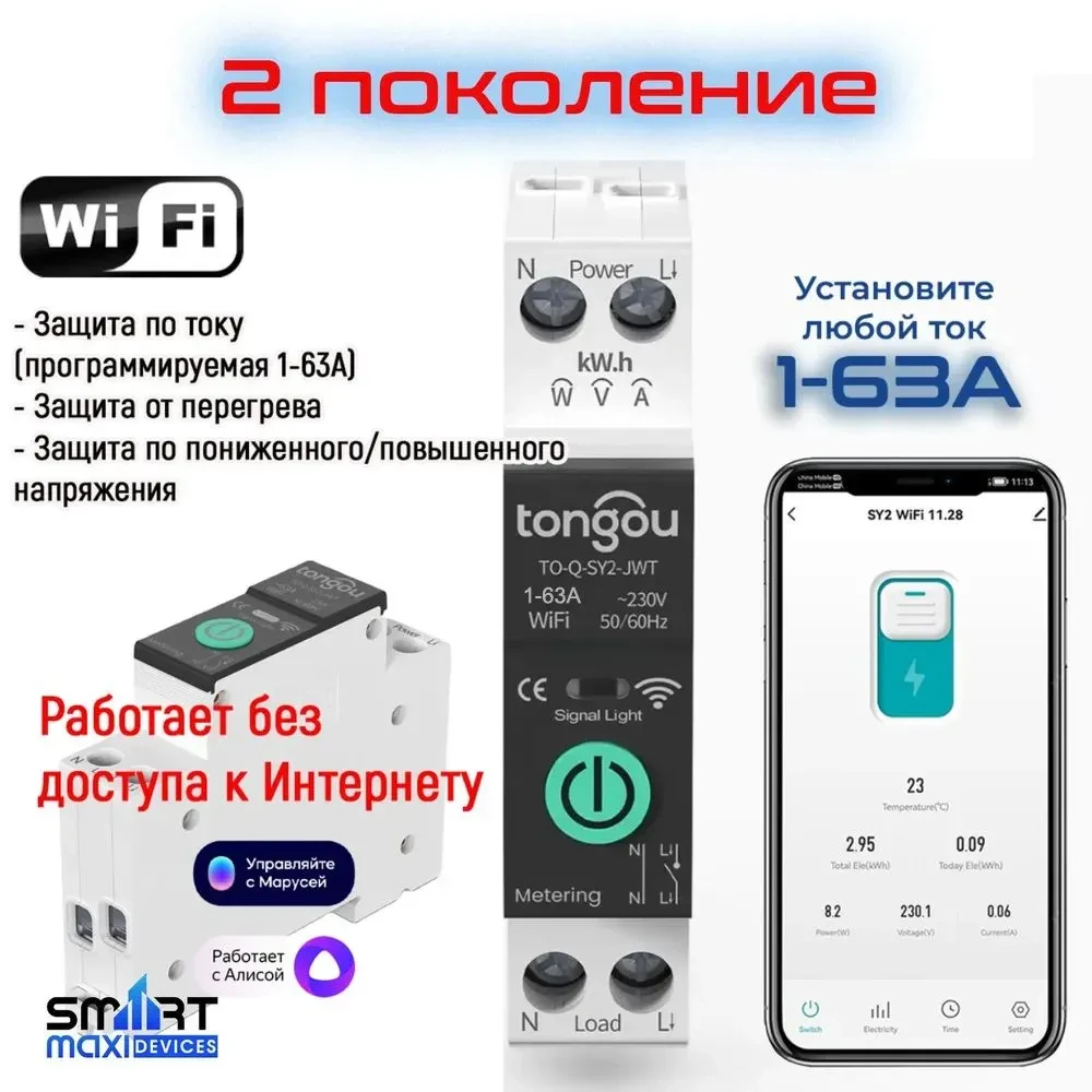 Умный автомат Wi-Fi 63A (2 поколение)Интеллектуальный Wi-Fi-переключатель TO-Q-SY2-JWT на DIN-рейке может дистанционно управлять установкой времени, времени цикла и обратного отсчета через мобильный телефон в любом месте, он включает функцию измерения статистики энергопотребления. Для работы требуется приложение Digma Smart Life, а затем можете подключить голосовой помощник Алиса, Маруся и другие. 14 000 тг. Маркетплейс: Satu.kz ТОО "CIT - Construction International Technology" Доставка: по Казахстану ПожаловатьсяКупить!