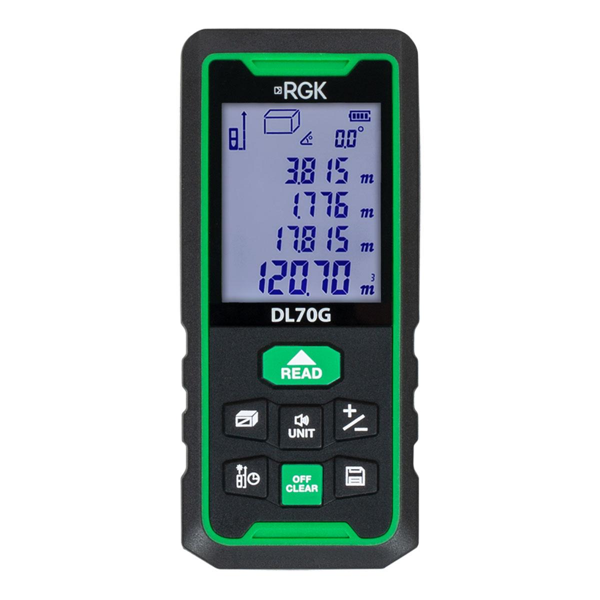 Лазерный дальномер RGK DL70G, зеленый луч 778183Лазерный дальномер RGK DL70G с лучом зеленого цвета служит для измерения расстояний, длин, высот, площадей и объемов. Рабочий диапазон составляет 70 м при погрешности ± 2 мм. Яркий зеленый луч, легко различимый при ярком солнечном свете, при работе на улице, или в просторных помещениях - ангарах, складах и т.д. Лазерная точка зеленого цвета с длинной волны 500-535 нм лучше воспринимается 37 490 тг.All-tools.kzДоставка: из АлматыПожаловатьсяКупить!