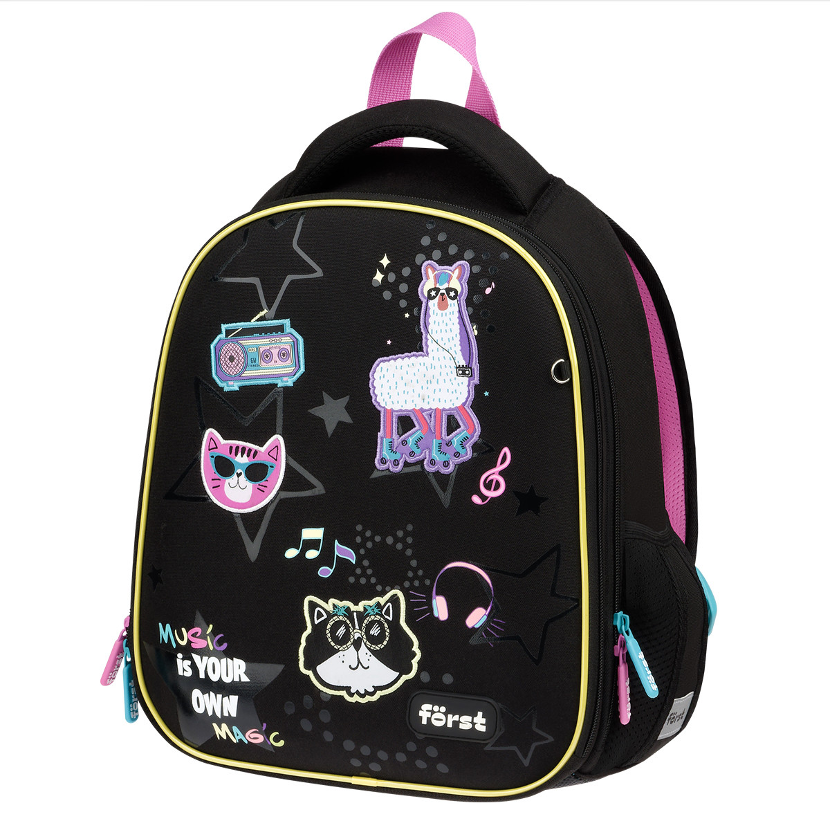 Ранец Först F-Top облегченный "Disco Lama" 36*28*15см, 2 отделения, 2 кармана, анатомическая спинка43 490Купить!тг.Marwin.kzДоставка: из АлматыПожаловатьсяЭргономичный ранец серии F-Top рассчитан на учеников младшей и средней школы. В ранце предусмотрены 2 отделения с разделителями для тетрадей, 2 боковых кармана, внутренний органайзер, эргономичные л еще→ямки, уплотненные боковинки. Модель оснащена правильной анатомической спинкой со спонжевыми вставками, покрытыми мягким вентиляционным материалом, который предотвращает натирание спины и плеч ребенка. Нагрудное крепление обеспечивает плотную фиксацию ранца, не дает лямкам спадать с плеч во время движения. Дно ранца покрыто водонепроницаемым материалом для защиты содержимого от влаги и легкого ухода за изделием. Наличие светоотражающих элементов – это важный фактор безопасного движения ребёнка в тёмное в…