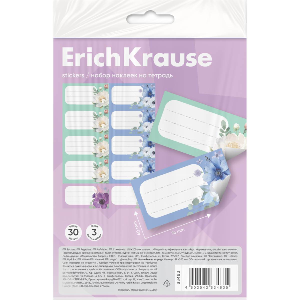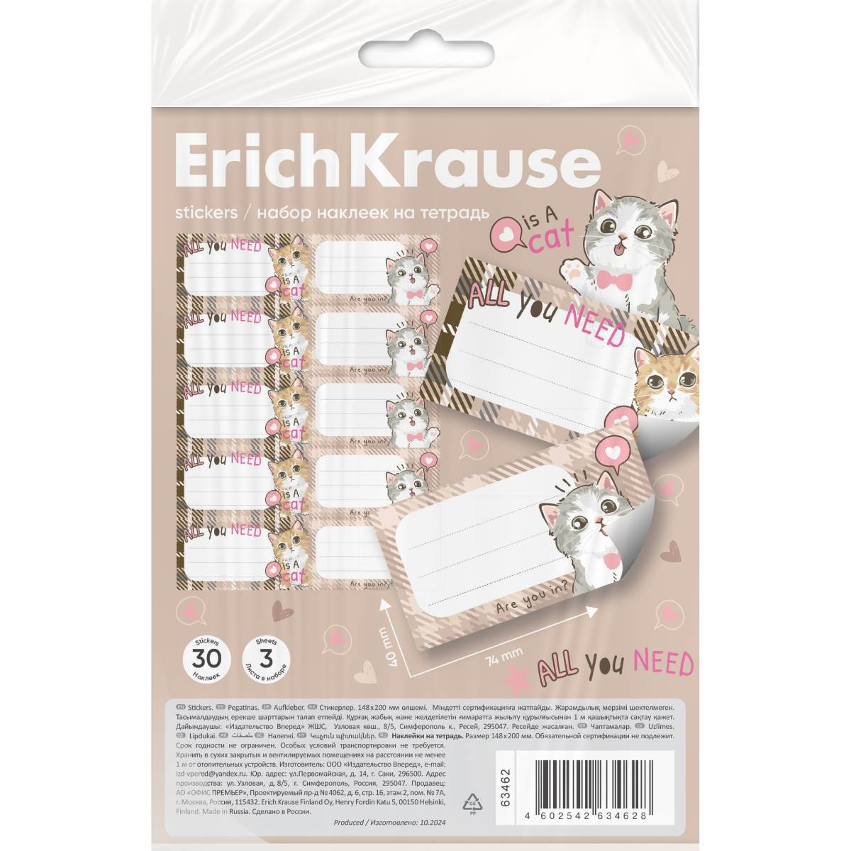 Наклейки на тетрадь ErichKrause Lovely Friends, 3 листа, в пакете с европодвесомНаклейки на тетради, книги, дневники, альбомы. В наборе 30 штук формата 40*74 мм. Наклейки изготовлены из самоклеящейся бумаги, вырезаны по контуру, легко снимаются с подложки и надежно крепятся на любой гладкой, чистой поверхности. На стикерах можно легко писать любой шариковой, гелевой ручкой или маркером. Упакованы в прозрачный пакет с подвесом. 850 тг.Marwin.kzДоставка: из АлматыПожаловатьсяКупить!