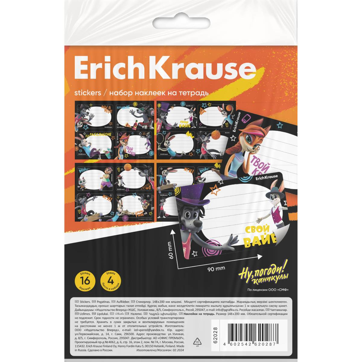 Наклейки на тетрадь ErichKrause Ну, Погоди! Каникулы, 4 листа, в пакете с европодвесомНаклейки на тетради, книги, дневники, альбомы. В наборе 16 штук формата 60х90мм. Наклейки изготовлены из самоклеящейся бумаги, вырезаны по контуру, легко снимаются с подложки и надежно крепятся на любой гладкой, чистой поверхности. На стикерах можно легко писать любой шариковой, гелевой ручкой или маркером. Упакованы в прозрачный пакет с подвесом. 525 тг.Marwin.kzДоставка: из АлматыПожаловатьсяКупить!