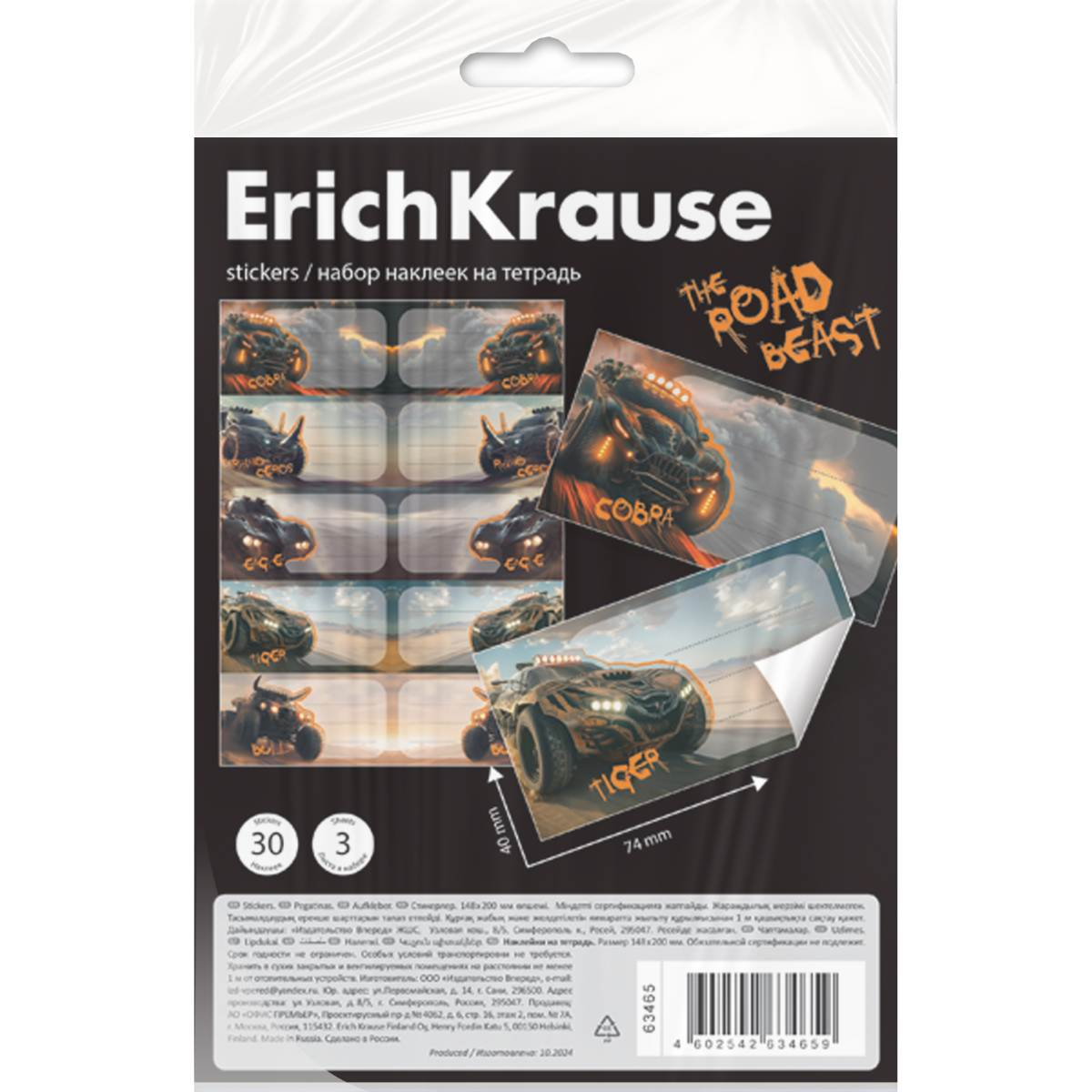 Наклейки на тетрадь ErichKrause Road Beast, 3 листа, в пакете с европодвесомНаклейки на тетради, книги, дневники, альбомы. В наборе 30 штук формата 40*74 мм. Наклейки изготовлены из самоклеящейся бумаги, вырезаны по контуру, легко снимаются с подложки и надежно крепятся на любой гладкой, чистой поверхности. На стикерах можно легко писать любой шариковой, гелевой ручкой или маркером. Упакованы в прозрачный пакет с подвесом. 425 тг.Marwin.kzДоставка: из АлматыПожаловатьсяКупить!