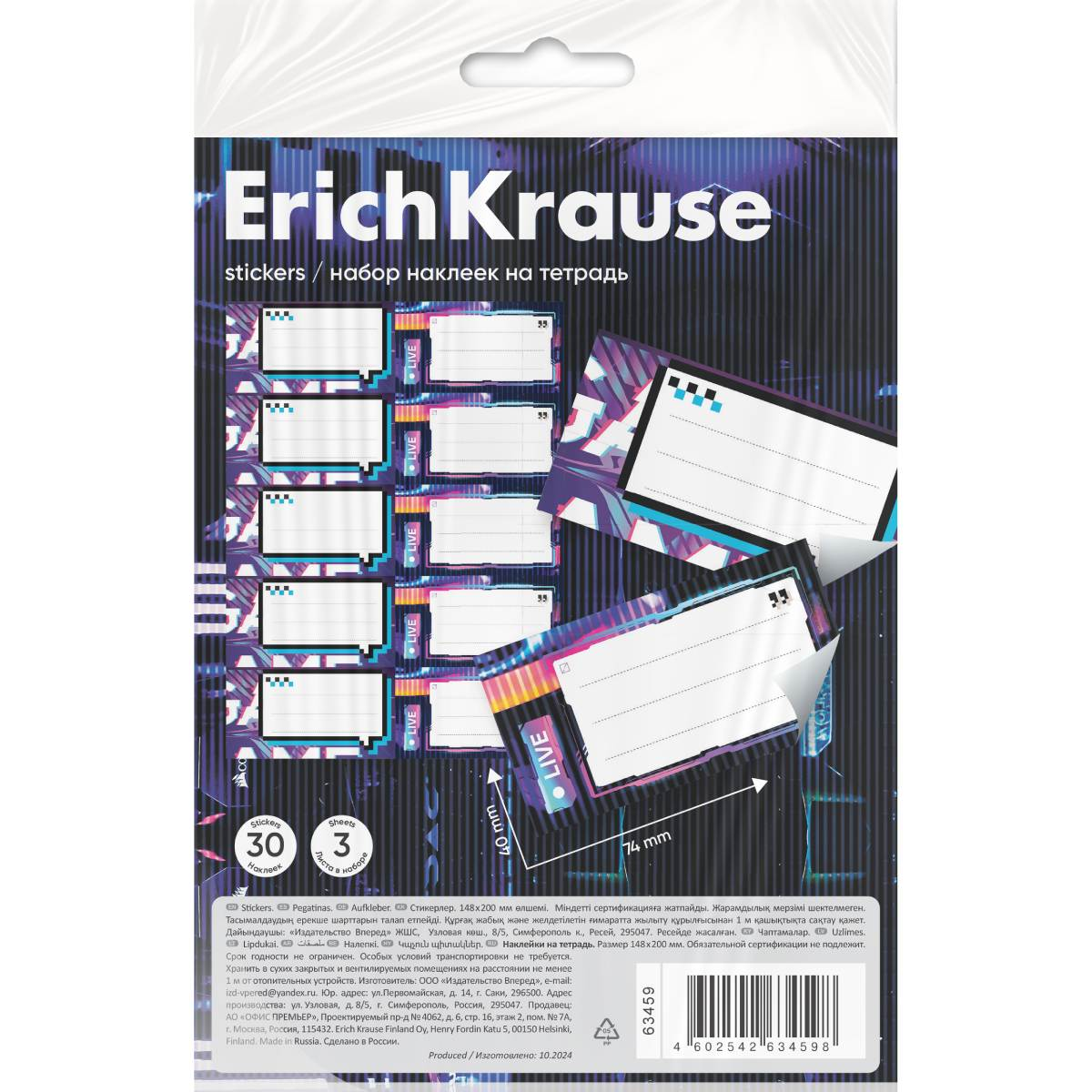 Наклейки на тетрадь ErichKrause Pointes, 3 листа, в пакете с европодвесомНаклейки на тетради, книги, дневники, альбомы. В наборе 30 штук формата 40*74 мм. Наклейки изготовлены из самоклеящейся бумаги, вырезаны по контуру, легко снимаются с подложки и надежно крепятся на любой гладкой, чистой поверхности. На стикерах можно легко писать любой шариковой, гелевой ручкой или маркером. Упакованы в прозрачный пакет с подвесом. 425 тг.Marwin.kzДоставка: из АлматыПожаловатьсяКупить!