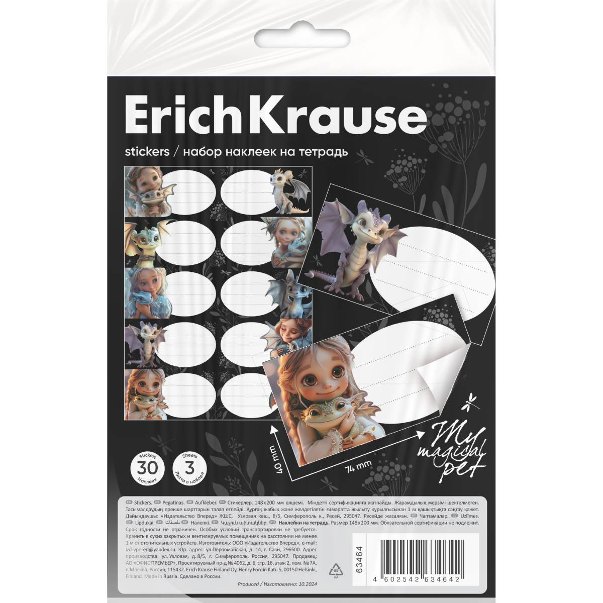 Наклейки на тетрадь ErichKrause Magic Pet, 3 листа, в пакете с европодвесомНаклейки на тетради, книги, дневники, альбомы. В наборе 30 штук формата 40*74 мм. Наклейки изготовлены из самоклеящейся бумаги, вырезаны по контуру, легко снимаются с подложки и надежно крепятся на любой гладкой, чистой поверхности. На стикерах можно легко писать любой шариковой, гелевой ручкой или маркером. Упакованы в прозрачный пакет с подвесом. 425 тг.Marwin.kzДоставка: из АлматыПожаловатьсяКупить!