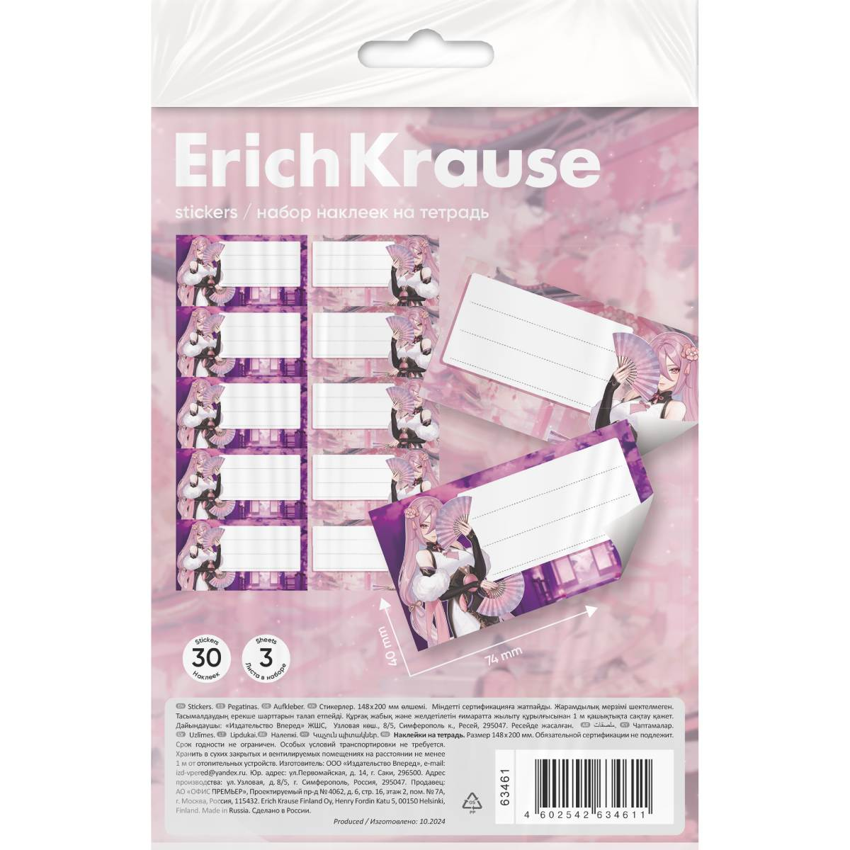 Наклейки на тетрадь ErichKrause Manga, 3 листа, в пакете с европодвесомНаклейки на тетради, книги, дневники, альбомы. В наборе 30 штук формата 40*74 мм. Наклейки изготовлены из самоклеящейся бумаги, вырезаны по контуру, легко снимаются с подложки и надежно крепятся на любой гладкой, чистой поверхности. На стикерах можно легко писать любой шариковой, гелевой ручкой или маркером. Упакованы в прозрачный пакет с подвесом. 425 тг.Marwin.kzДоставка: из АлматыПожаловатьсяКупить!