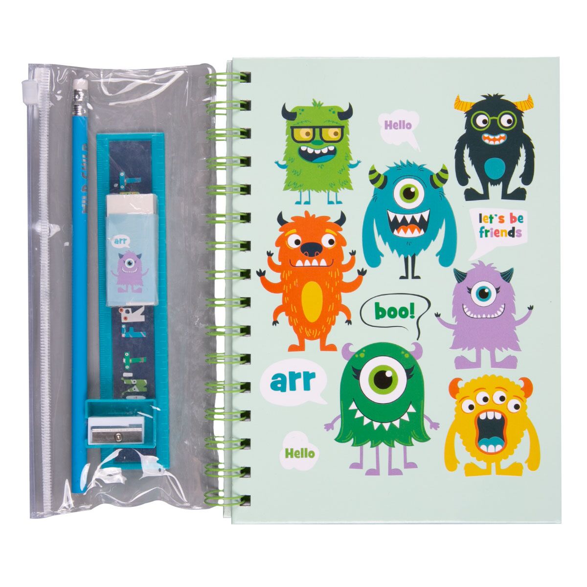 Набор канцелярских принадлежностей JOHNSHEN "Монстры" 5 предметовНеобычный набор понравится, как ребенку, так и взрослому. В нем есть все самое необходимое. ПВХ-пенал на зип-клапане прикреплен к спирали блокнота, что очень удобно для переноски и не позволит потеряется принадлежностям. Блокнот на спирали прекрасно подойдет для записи творческих идей, учебных заметок или любых других памяток. Перфорация на отрыв позволяет легко и аккуратно отрывать листы. Удобный и компактный размер позволит носить его с собой. Скрепление спираль дает возможность раскрывать блокнот на 360 градусов. В комплекте: блокнот с пеналом, карандаш простой, линейка (15 см), ластик – 2 шт. - Количество листов: 80 - Крепление блокнота: спираль - Линовка: линия - Переплет: твердый … 1 540 тг.Marwin.kzДоставка: из АлматыПожаловатьсяКупить!