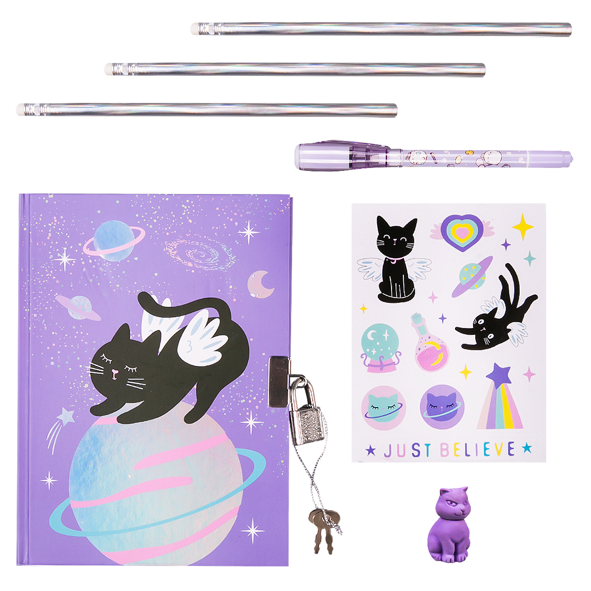 Набор канцелярских принадлежностей JOHNSHEN "Black kitty"Набор канцелярских принадлежностей — это идеальный комплект для учебы, работы или творчества. Недатированный блокнот станет не только незаменимым помощником в ведении дел, но и добавит красок в повседневную рутину. Обложка блокнота твердая и имеет прямые уголки. Закрывается блокнот на замочек с помощью ключа. Удобный и компактный размер позволит носить его с собой. В наборе также имеются простые карандаши, резинка в виде милой кошечки и уникальный фломастер с невидимыми чернилами. Написанный текст или рисунок можно увидеть только с помощью фонарика, встроенного в колпачок, что добавляет элемент интриги и веселья в процесс письма. В комплект входят наклейки, с помощью которых можно будет украсить … 2 030 тг.Marwin.kzДоставка: из АлматыПожаловатьсяКупить!