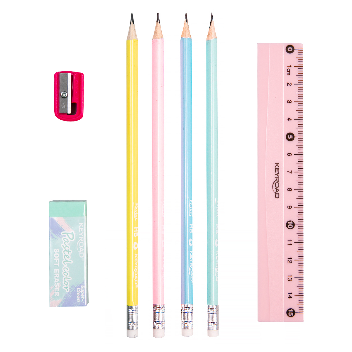 Набор канцелярских принадлежностей KEYROAD Pastel, 4 предметаНабор канцелярских принадлежностей KEYROAD Pastel — отличный помощник в учёбе и работе . Трехгранные карандаши удобно лежат в руке, дополнительно оснащены ластиками. Все предметы выполнены в стильных пастельных цветах. В комплекте: карандаш чернографитный – 4 шт., линейка 15см., ластик (1 х 6 х 2 см), точилка (1 х 1.5 х 2.5 см). Размер упаковки (г/ш/в): 2 х 10 х 24 см Материал: металл, картон, пластик Страна производитель: Китай 1 000 тг.Marwin.kzДоставка: из АлматыПожаловатьсяКупить!