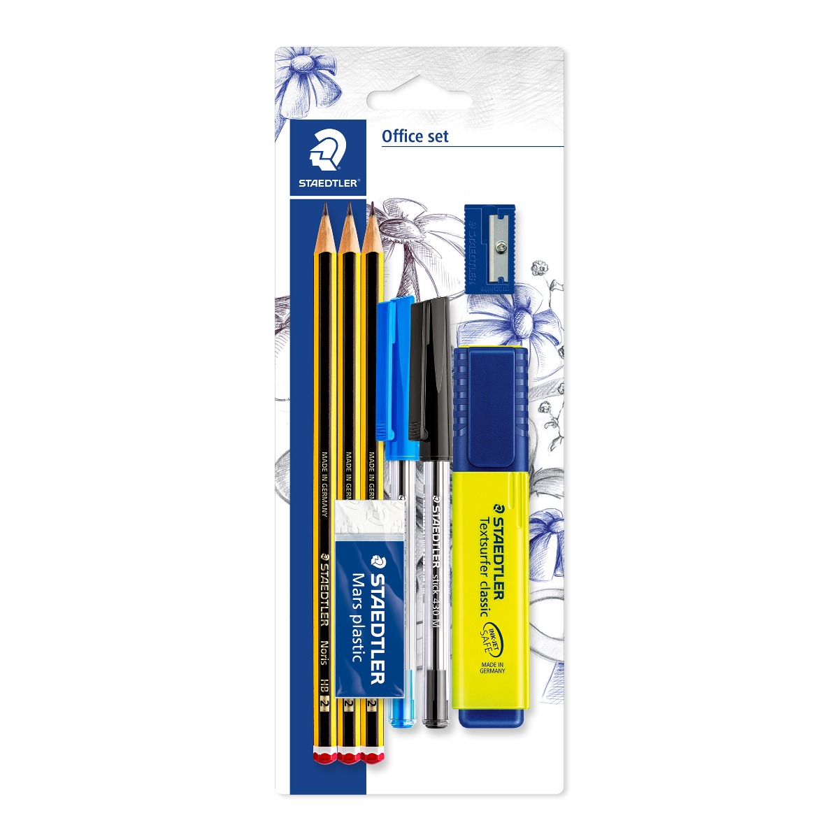 Набор канцелярский Office set (карандаш 3 штуки, ручка 2 штуки, текстовыделитель, ластик, точилка)Набор принадлежностей для школы и офиса из 8 предметов: 3 чернографитовых карандаша Noris Eco HB, 2 автоматические шариковые ручки Ball синего и черного цветов с толщиной линии M 0.45 мм, маркер-текстовыделитель Textsurfer Classic желтого цвета с толщиной линии 1-5 мм, ластик Mars Plastic размером 65 х 23 х 13 мм и пластиковая точилка на одно отверстие. Всё необходимое в одном наборе! 1 975 тг.Marwin.kzДоставка: из АлматыПожаловатьсяКупить!
