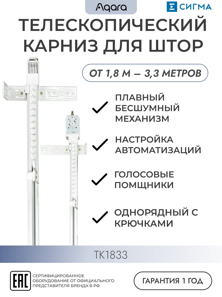 Телескопический карниз для умных штор Aqara ТК1833 белый56 995Купить!тг.Greenprice.kzДоставка: из АлматыПожаловатьсяТелескопический карниз Aqara ТК1833 предназначен для автоматизации штор в системе умного дома. Совместим с мотором Aqara Curtain Controller (приобретается отдельно). Конструкция раздвигается от 1833 еще→до 3300 мм, подходит для установки на стену или потолок. Управление возможно вручную или через автоматизацию. Открытие штор — из центра. В комплекте кронштейны и инструкция по установке.