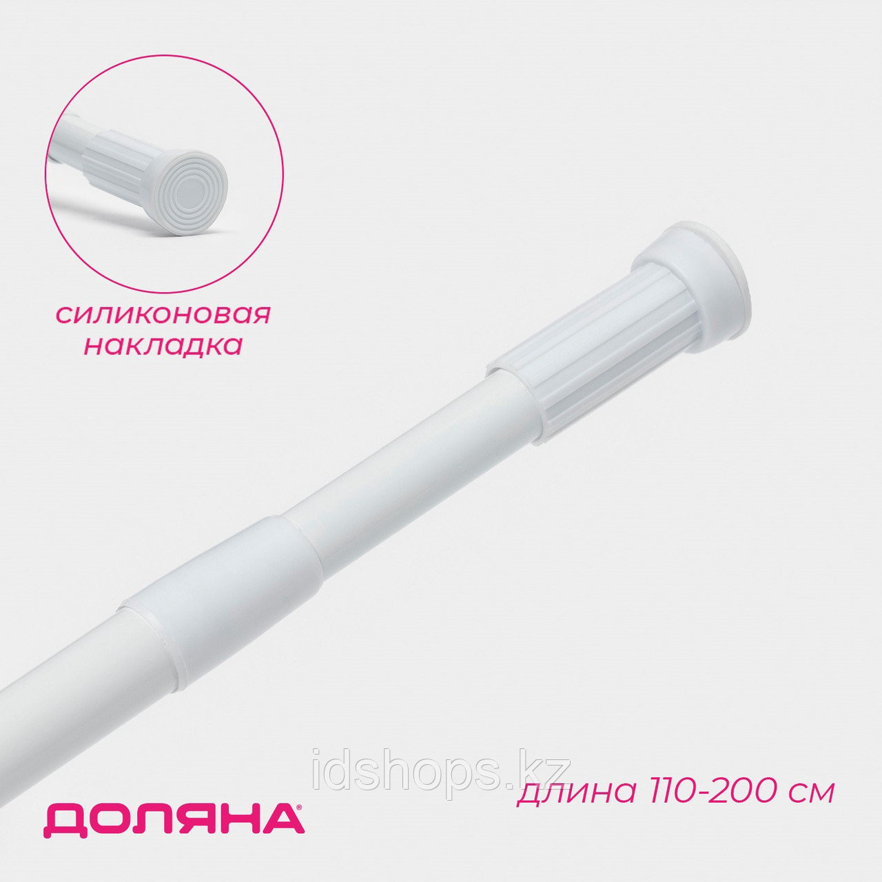 Карниз для ванной Доляна, телескопический, 110-200 см, белый2 411Купить!тг. Маркетплейс: Satu.kz ID Shopps.kz - Оптово-розничный Склад Доставка: по Казахстану ПожаловатьсяСтиль и функциональность объединяются в этом карнизе, который идеально подходит для ванной комнаты. Телескопическая система позволяет легко регулировать длину от 110 до 200 см, а белый цвет гармонично еще→вписывается в любой интерьер, добавляя свежести и легкости.Изготовленный из прочного металла, этот карниз обеспечивает надежность и долговечность. Простота установки делает его