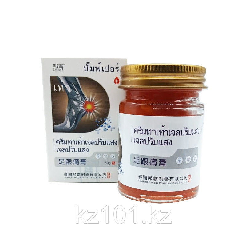 Мазь для суставов и стоп Bangba Tendon Sheath Ointment 50 гКрем предназначен для облегчения боли и дискомфорта в области стоп и пяток. Благодаря сочетанию растительных экстрактов и охлаждающих компонентов средство оказывает успокаивающее, расслабляющее и противовоспалительное действие. Подходит для людей, страдающих от боли в пятках, усталости ног, воспалений суставов и связок. Помогает снять чувство тяжести, уменьшает отёчность и 1 800 тг. Маркетплейс: Satu.kz Интернет - магазин "Безопасный Дом" Доставка: по Казахстану ПожаловатьсяКупить!