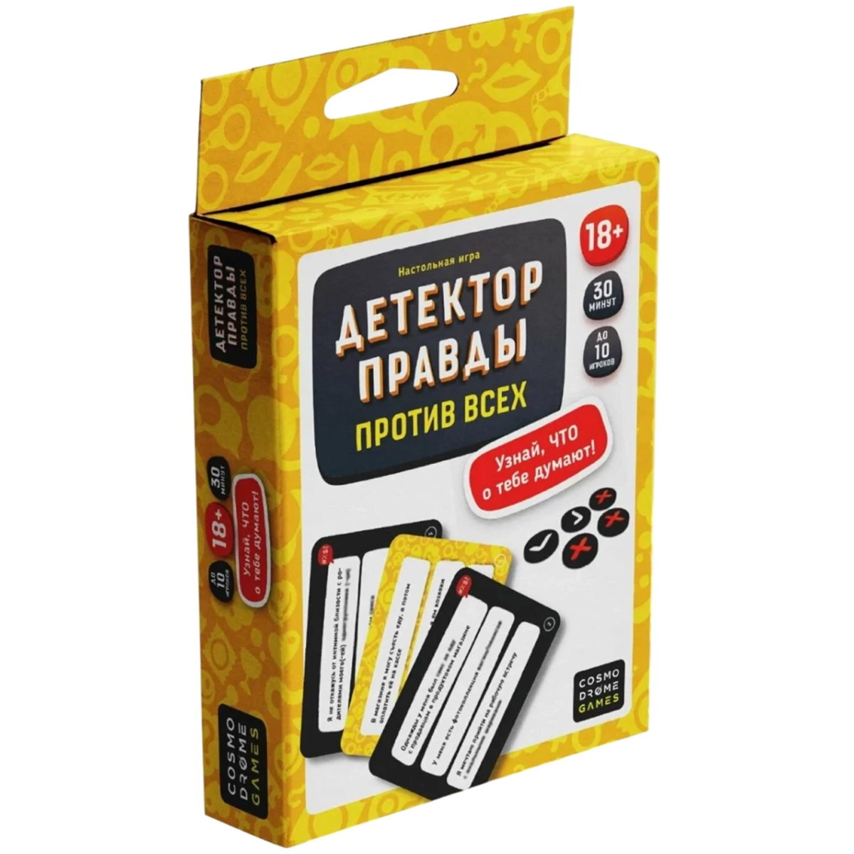 Cosmodrome Games: Детектор правды. Против всех3 990Купить!тг.Marwin.kzДоставка: из АлматыПожаловаться«Детектор правды: против всех» — настольная игра для вечеринок, которая превратит скучную посиделку с друзьями в шоу с острыми шутками и неожиданными откровениями. Что происходит в игре? Ведущий зач еще→итывает утверждения из карточек, а остальные игроки голосуют, правда это или ложь. За правильные ответы начисляются очки, а в каждом новом раунде тема и уровень интриги меняются. В игре есть два типа вопросов: базовые — для непринужденных посиделок, и дерзкие — для смелых игроков, готовых к неожиданных открытиям.Сыграть в игру можно компанией от 3 до 20 человек. Простые правила позволяют начать игру сразу, а динамичные партии по 20 минут не заставят никого скучать. Игра выполнена в компактном формате…