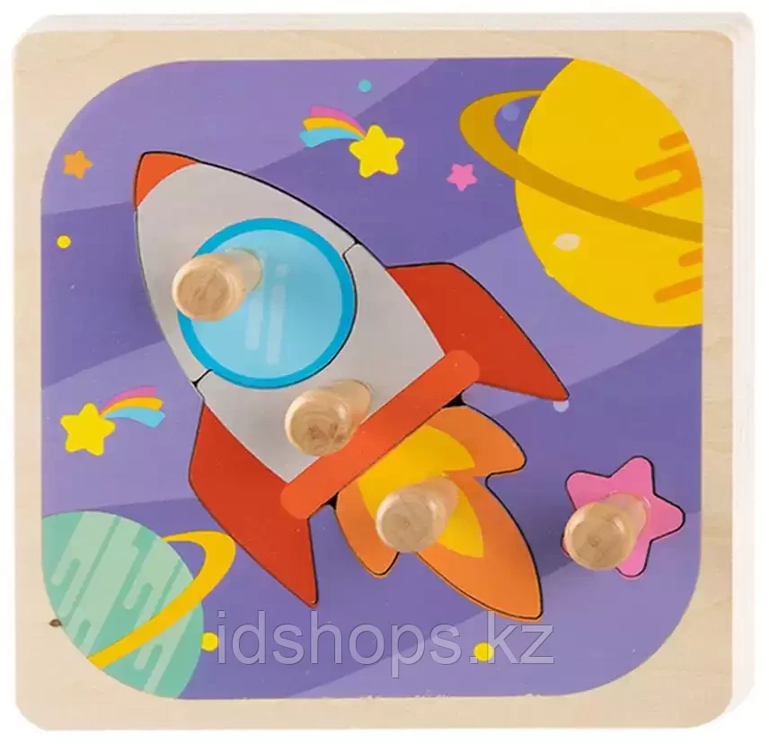 Рамка-вкладыш Ракета ST823-4 дерево650Купить!тг. Маркетплейс: Satu.kz ID Shopps.kz - Оптово-розничный Склад Доставка: по Казахстану ПожаловатьсяДеревянная рамка-вкладыш «Ракета» - отличная развивающая игра для ребёнка.Логическая игра с фигурками-вкладышами будет способствовать развитию у детей:- мелкой моторики рук,- логического мышления,- вн еще→имания,- памяти.Игра представляет собой деревянную основу с изображением ракеты в космосе.В её специальные углубления нужно вложить составные пазлы-части ракеты, повторяя в