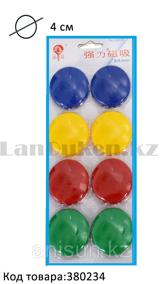 Набор магнитов разноцветные круглые диаметр 4 см 8 штук Shantou Yougyi 40081 008Купить!тг. Маркетплейс: Satu.kz Ani-Sun Trade Доставка: по Казахстану ПожаловатьсяНабор разноцветных магнитов Магниты предназначен для крепления различных материалов (бумага, картон и многое другое) к металлическим поверхностям (такие как доски, холодильники, шкафчики и так далее). еще→Круглые магниты имеют диаметр 4 см, которые способны удерживать различные открытки, стикеры, фотографии, постеры и рисунки. Магниты будут не только полезные для вас, но и будут радовать и поднимать вам настроение своим цветом!