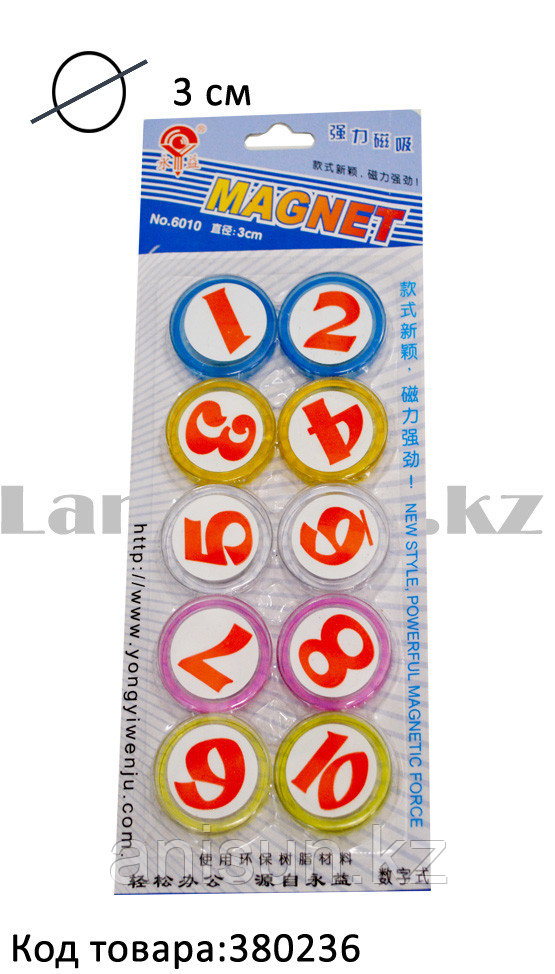 Набор магнитов разноцветные круглые диаметр 3 см Цифры 1-10 10 штук Shantou Yougyi 60101 331Купить!тг. Маркетплейс: Satu.kz Ani-Sun Trade Доставка: по Казахстану ПожаловатьсяНабор разноцветных магнитов Магниты предназначен для крепления различных материалов (бумага, картон и многое другое) к металлическим поверхностям (такие как доски, холодильники, шкафчики и так далее). еще→Идеально подойдут для начальных классов или детских садов. Поможет быстро и весело ребенку начать считать! Круглые магниты имеют диаметр 3 см, которые способны удерживать различные открытки, стикеры, фотографии, постеры и рисунки. Магниты будут не только полезные для вас, но и будут радовать и поднимать вам настроение своим цветом!