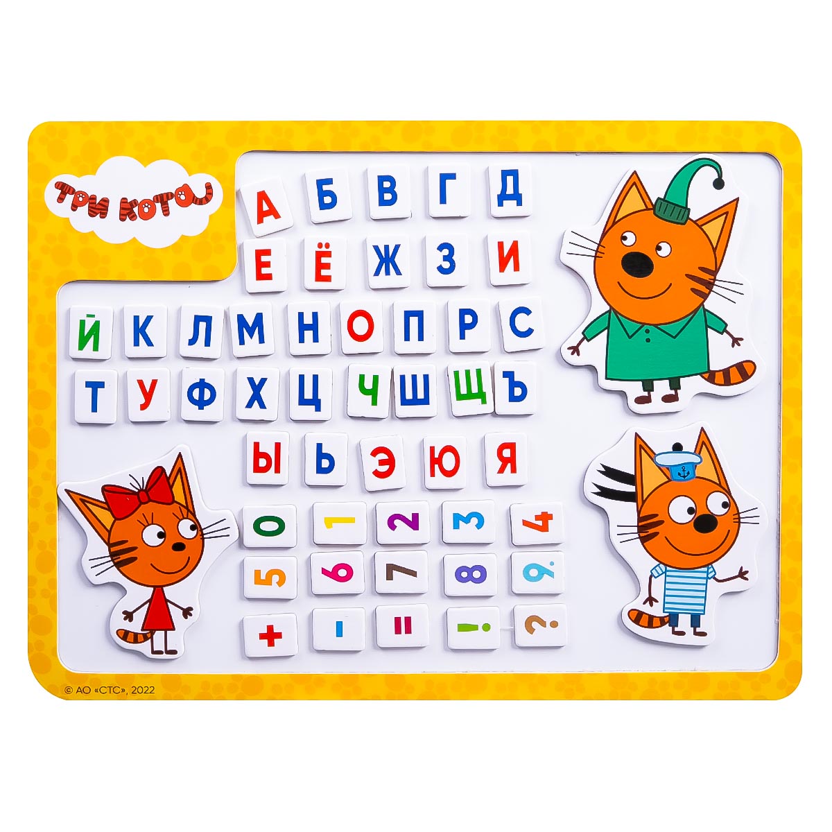 Три кота: Доска магнитная "алфавит"4 590Купить!тг.Marwin.kzДоставка: из АлматыПожаловатьсяМагнитная доска, украшенная забавными магнитиками, позволит вашему ребенку исследовать мир букв, цифр и других образовательных элементов. Крупные магниты с персонажами из популярного мультсериала «Т еще→ри кота» превратят учебный процесс в захватывающее и радостное приключение. Благодаря магнитам - буквы и другие элементы легко крепятся к металлической доске (в комплекте) или холодильнику. Развивающий набор в игровой форме познакомит ребёнка с алфавитом, числами, научит составлять слова и считать. В комплекте: доска для магнитов, магнитики (1.5 х 2 – 8 х 9.5 см) – 51 шт. - Размер доски (г/ш/в): 30 х 22.5 х 0.5 см - Материал: металл, картон - Тип упаковки: пленка - Страна изготовитель: Китай …