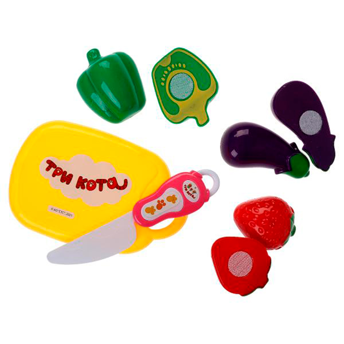 Три кота: Набор овощей и фруктов Три Кота4 190Купить!тг.Marwin.kzДоставка: из АлматыПожаловатьсяИгровой набор овощей и фруктов «Три кота» ТМ «Играем вместе» — это замечательный подарок для маленьких поклонников мультсериала о весёлых котёнках. Набор включает в себя реалистично выполненные ов еще→ощи и ягоды, которые можно разрезать и снова склеивать, что привнесет в игру элемент обучения и тренировки мелкой моторики. С этим набором ребёнок сможет легко выучить названия овощей и ягод, а также научиться безопасному использованию ножа. Игрушка поможет развить фантазию и внимание, а также расширит кругозор ребёнка, открывая ему новые возможности для сюжетно-ролевых игр, таких как кафе, магазин или пикник. В комплекте: доска, нож, баклажан, клубника, сладкий перец, острый перец, брокколи, помидор,…