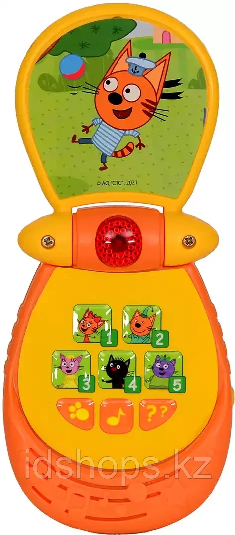 Игрушка музыкальная Телефон обучающий Три Кота HT577-R42 340Купить!тг. Маркетплейс: Satu.kz ID Shopps.kz - Оптово-розничный Склад Доставка: по Казахстану ПожаловатьсяОбучающая игрушка со светом «Три кота. Телефон» ТМ «УМка» непременно понравится маленьким поклонникам мультсериала про любознательных котят:- 9 песен из м/ф (фрагменты)- 5 загадок- фразы героев- свето еще→вые эффектыЯркий телефончик станет любимой игрушкой малыша. Он с удовольствием будет нажимать на разноцветные кнопочки и слушать весёлые песенки, фразы любимых персонажей, а также