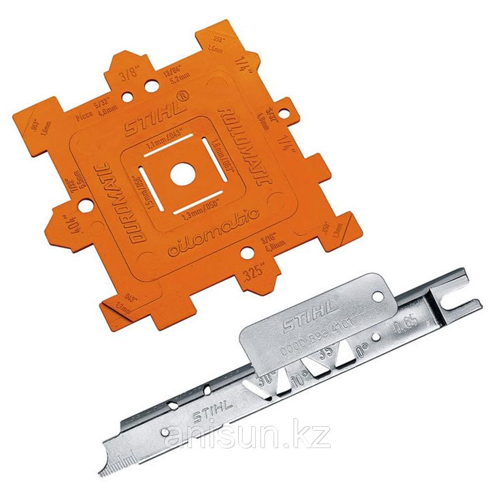 Набор по уходу за режущей гарнитурой STIHL 710165 107Купить!тг. Маркетплейс: Satu.kz Ani-Sun Trade Доставка: по Казахстану ПожаловатьсяНабор по уходу за режущей гарнитурой STIHL 71016 - набор STIHL по уходу за режущей гарнитурой (калибры). Данный комплект состоит из: калибра для цепи 1/4", 3/8 PM, 0.325", 3/8; калибра для определения еще→шага цепи и звёздочки; калибра для определения степени износа звёздочек.