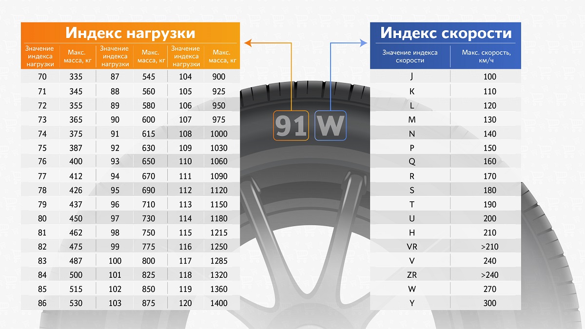 Немаловажными пунктами при выборе любой резины, будь она летней или зимней, выступают значения индексов скорости и нагрузки: