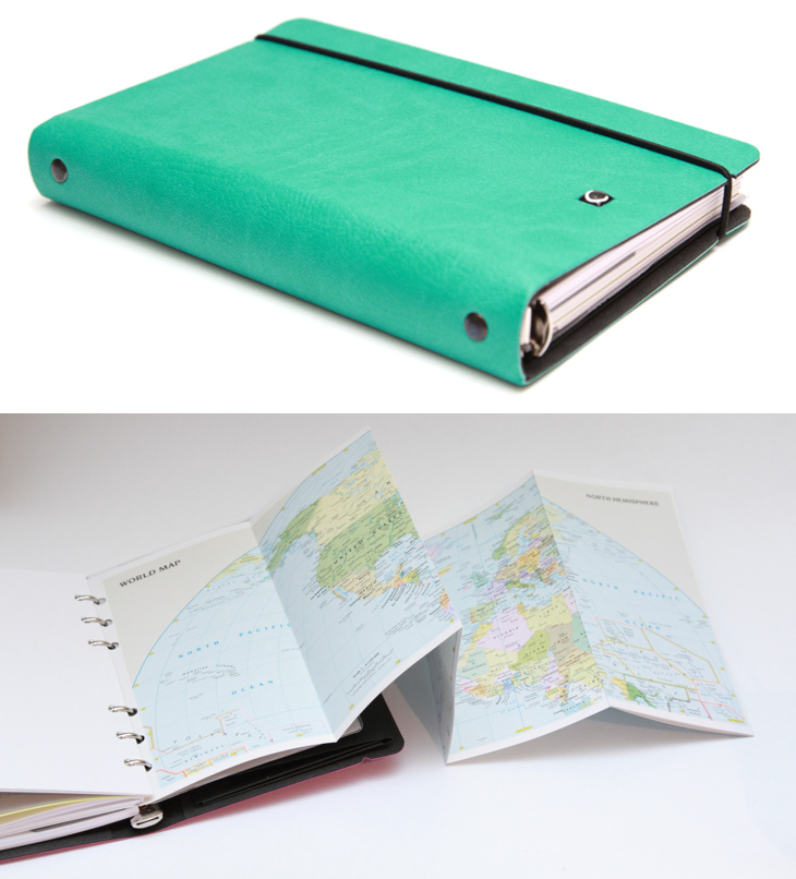 Интересные особенности: карманный формат (9,5 х 14 см), сменный внутренний блок, обложка из эко-кожи, круглая черная резинка-застёжка, кармашек для мелочей, разделитель дней, разноцветные страницы в клетку для эскизов, страницы для заметок в линию, нелинованные страницы из плотной бумаги, пластиковые кармашки для визиток, разворачивающаяся карта мира, разделитель страниц. Самый многозадачный ежедневник с большим количеством дополнительных функций.